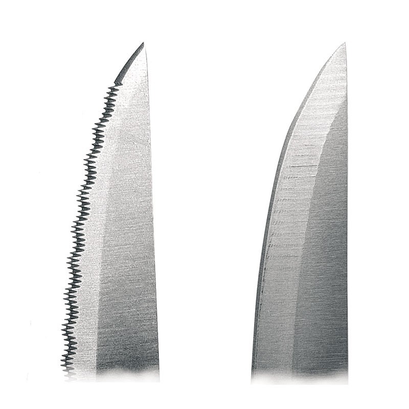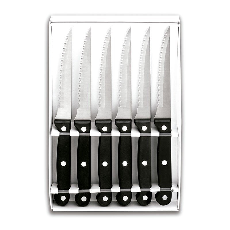 Set compuesto de 6 cuchillos chuleteros de cocina de 21 cm con hoja de acero lisa o de sierra a elegir.