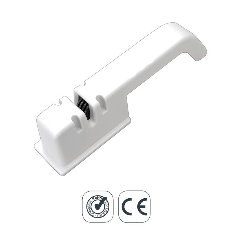 Afilador de cuchillos manual con rulinas de acero. Basta con desplazar el cuchillo adelante y atrás para sacar filo a la hoja del cuchillo.
