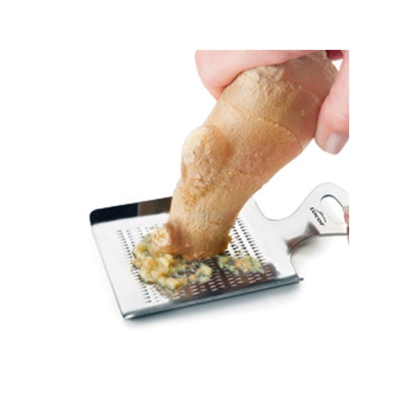 Rallador de especias tamaño mini de 11x7 cm fabricado en acero inoxidable de gran calidad y excelente resistencia a la corrosión. Altura: 1 cm.
