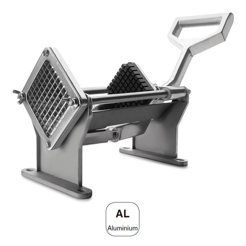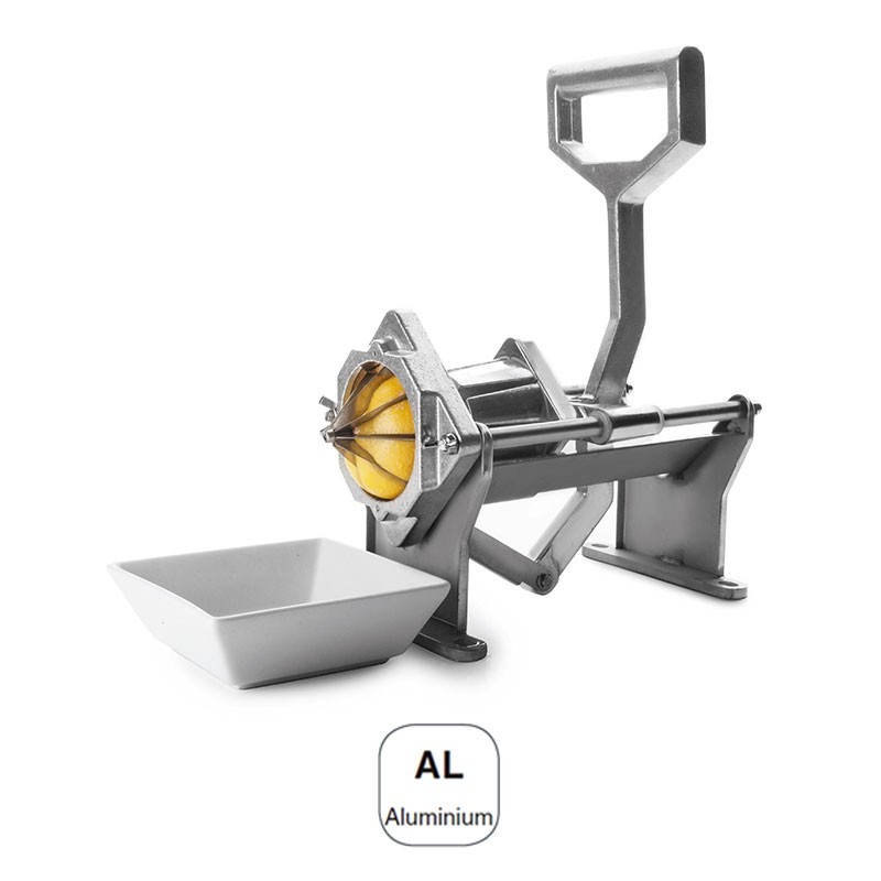 Máquina corta patatas en chip y gajos gama profesional con 4 cuchillas diferentes, fabricada en aluminio de excelente calidad y resistencia a la corrosión.