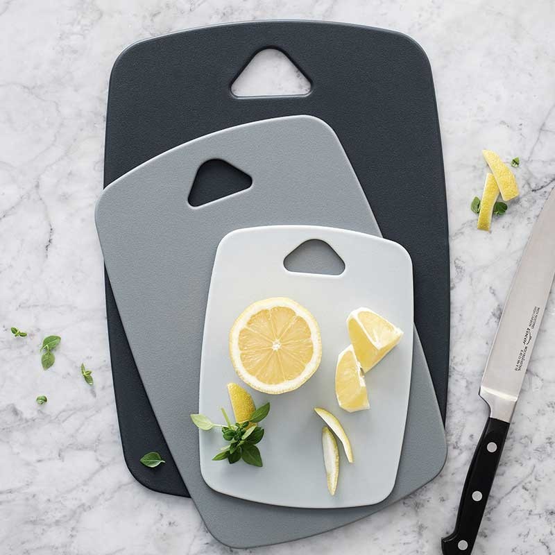 El set cuenta con 3 tablas de diferentes colores en polipropileno de alta densidad, un material resistente, higiénico y fácil de limpiar, apto también para lavar en lavavajillas.