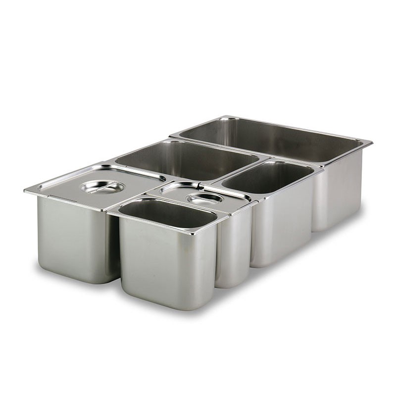 Estos recipientes pueden ser de varias medidas estándar, hasta un total de 9 tamaños diferentes y su construcción puede variar según el uso al que vayan destinados, entre los que puede encontrar acero inoxidable, policarbonato, polipropileno, melamina e incluso porcelana.