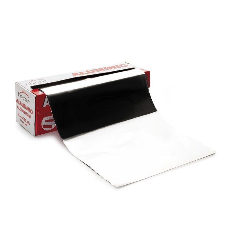 Bobina de papel de aluminio de 300 metros longitud y 11 micras de espesor. Ideal para hostelería y restauración. Anchos disponibles: 30 y 40 cm.