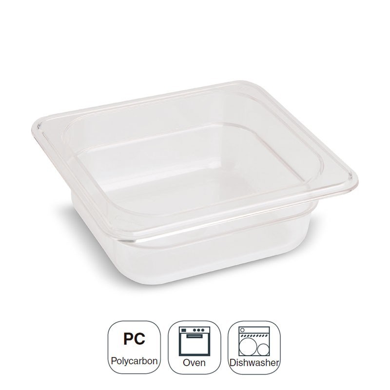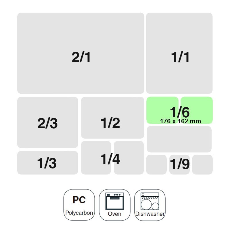 Cubeta tamaño GN 1/6 de 176x162 mm para cocinas profesionales fabricada en policarbonato de alta calidad ligero e indeformable.