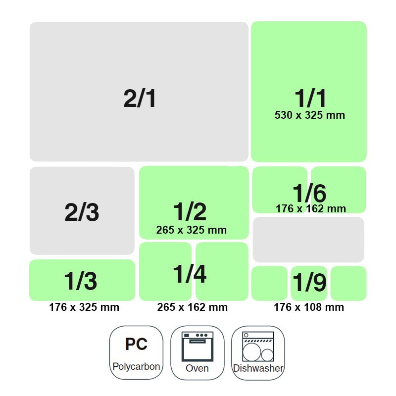 Este formato estándar preestablecido permite la organización y optimización del espacio en equipos de cocina tales como cámaras frigoríficas, hornos, estanterías, carros porta-bandejas, carros y cubetas de limpieza para lavavajillas industriales, equipos de transporte térmico para buffets, etc.