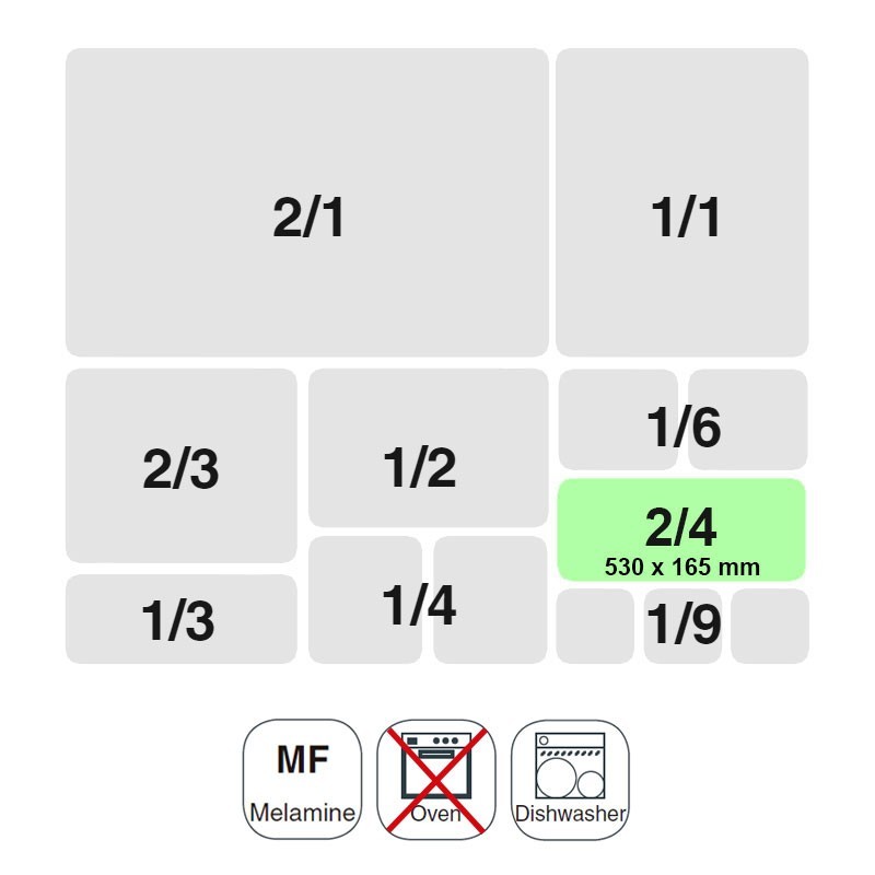 Cubeta tamaño GN 2/4 de 530x165 mm para cocinas profesionales fabricada en resina sintética blanca de alta calidad y resistencia.