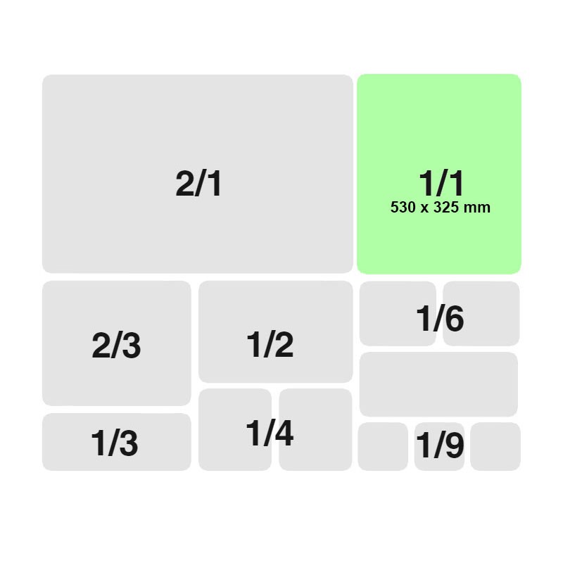 Este formato estándar preestablecido permite la organización y optimización del espacio en equipos de cocina tales como cámaras frigoríficas, hornos, estanterías, carros porta-bandejas, carros y cubetas de limpieza para lavavajillas industriales, equipos de transporte térmico para buffets, etc.