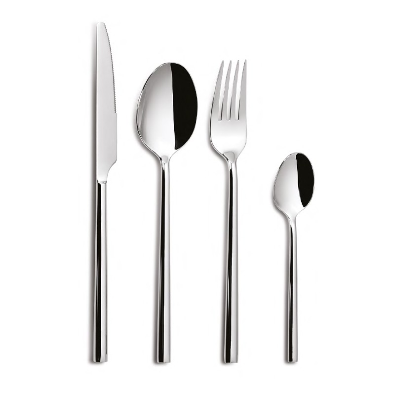 Set de 24 cubiertos Comas Serie Oslo Eco fabricados en acero inoxidable 18% cromo, libre de níquel y 7 mm de espesor.