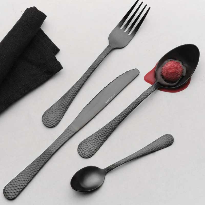 Set de 24 cubiertos Comas Serie Luna Black fabricados en acero inoxidable 18% cromo, libre de níquel y 1,8 mm de espesor.