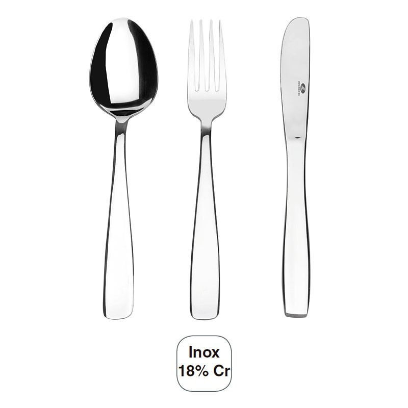 Cuchara de postre Serie Hotel fabricada en acero inoxidable 18% Cromo de 1,8 mm de espesor de gran calidad y resistencia a la corrosión. Pack 12 unidades.