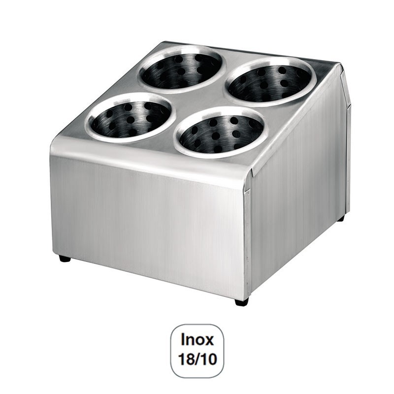 Soporte para cubiertos con vasos escurridores independientes fabricado en acero inoxidable 18/10 de alta calidad y resistencia a la corrosión. Disponible con 4 o 6 vasos.