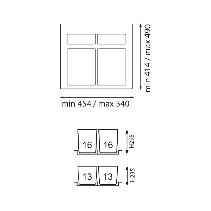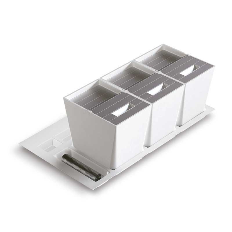 Kit de cubos de reciclaje ecológico Premiere para cajones caceroleros de cocina. Disponible en color blanco o antracita, y para diferentes medidas de mueble.