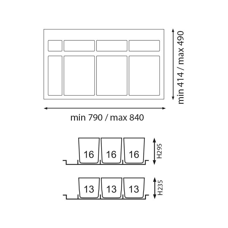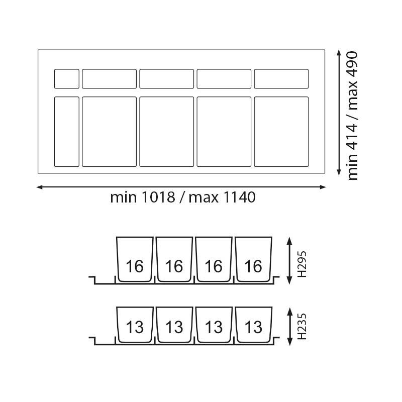 Todos los modelos ofrecen la posibilidad de personalizar el centro de recogida así como otros elementos destinados a los residuos, incluidos los envases de detergentes. Gracias a su robusta manija es fácil de transportar y los separadores colocados en la bandeja interior son ideales para el almacenamiento de esponjas y guantes.