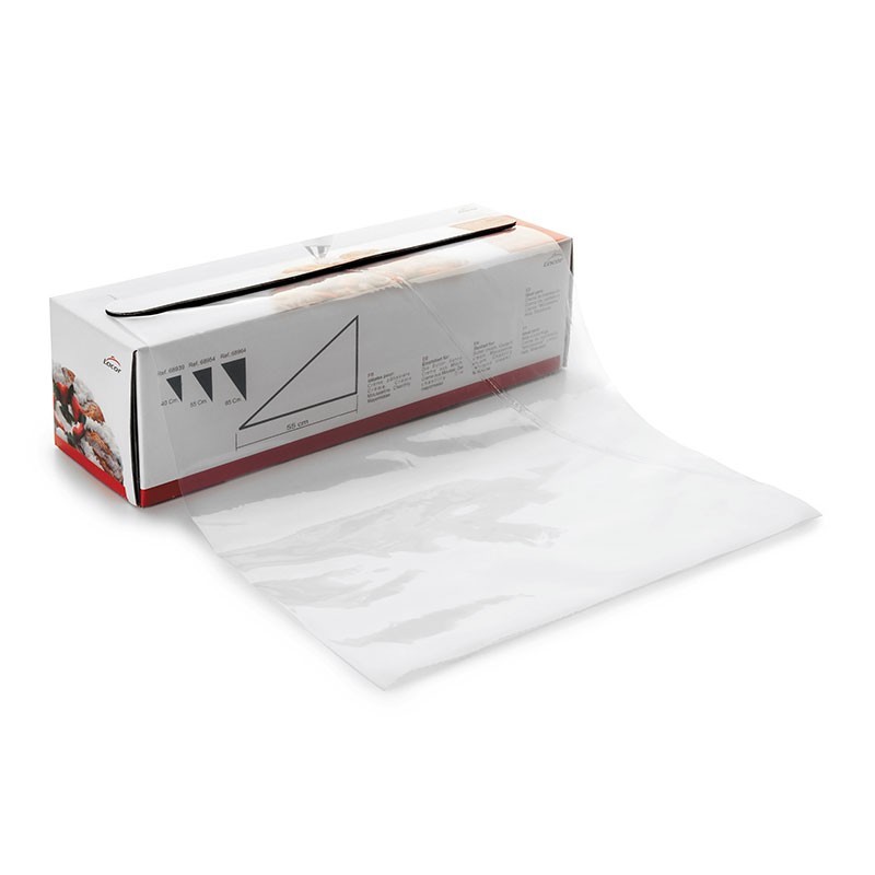 Caja con 100 mangas pasteleras de plástico desechable de galga 280. Disponible en varias medidas de largo.