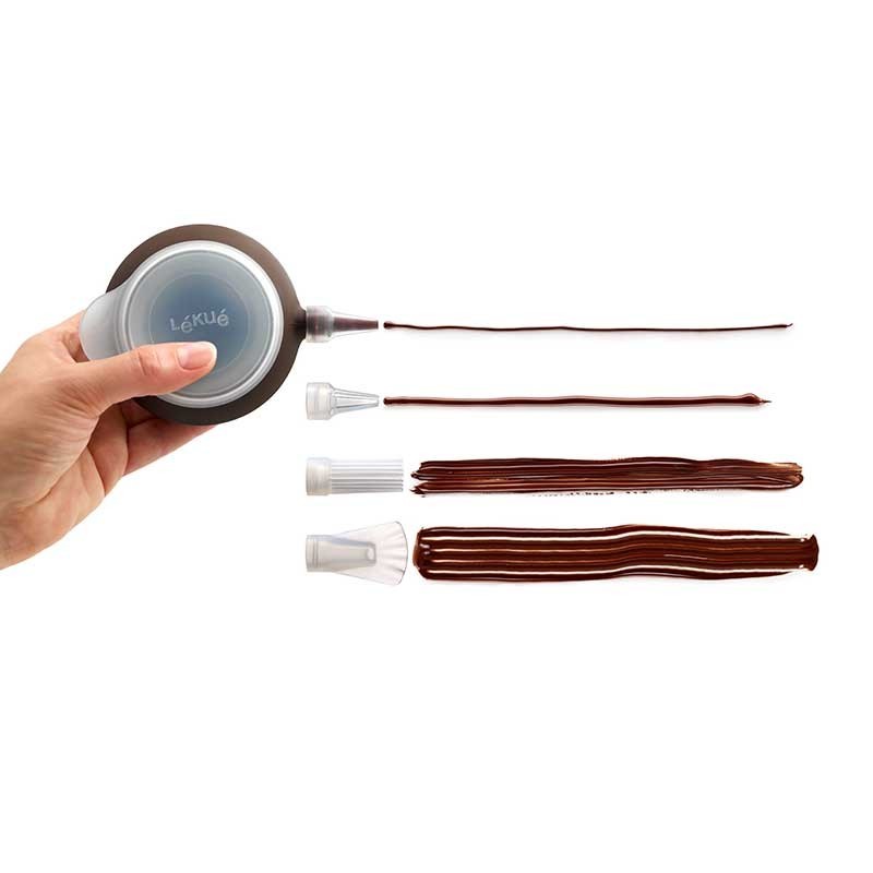 Decorar es terminar de cocinar, tus platos no están completos hasta que les das tu toque final. El decopen es un utensilio de repostería para servir salsas y otros con un acabado profesional y un manejo muy sencillo. Incluye 4 boquillas diferentes para personalizar tu decoración.