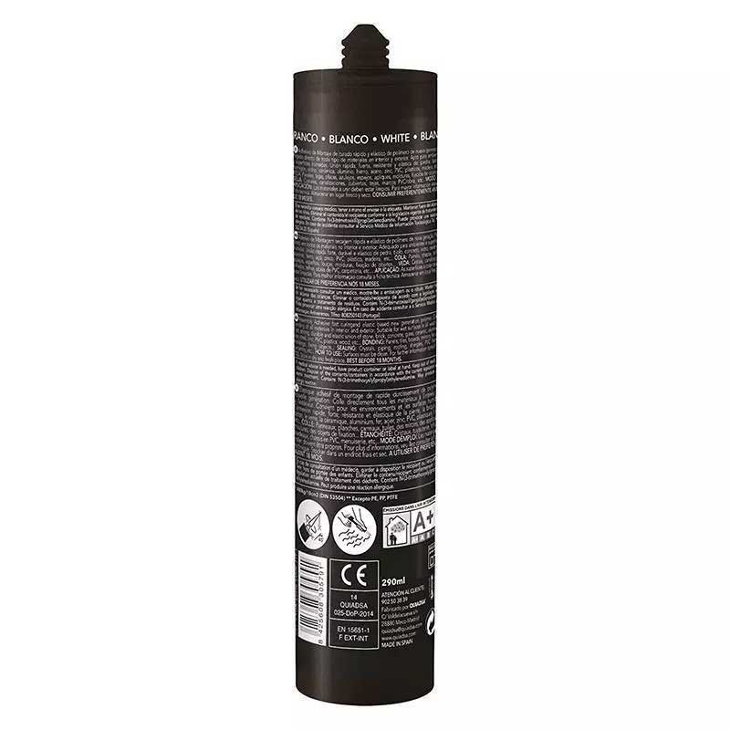 Adhesivo elástico de polímero mono componente de nueva generación( silano modificado).Pegado de paneles, tejas, placas, azulejos, espejos, apliques, molduras, fijación de objetos. Sellado de cristales, canalizaciones, cubiertas, tejas, marcos PVC/obra.