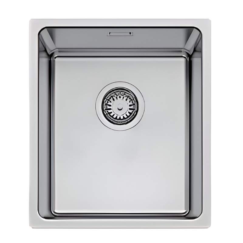 Fregadero de acero inoxidable modelo Ferrara Plus de 380 x 440 mm para instalación bajo encimera, óptica enrasada y filotop a elegir.