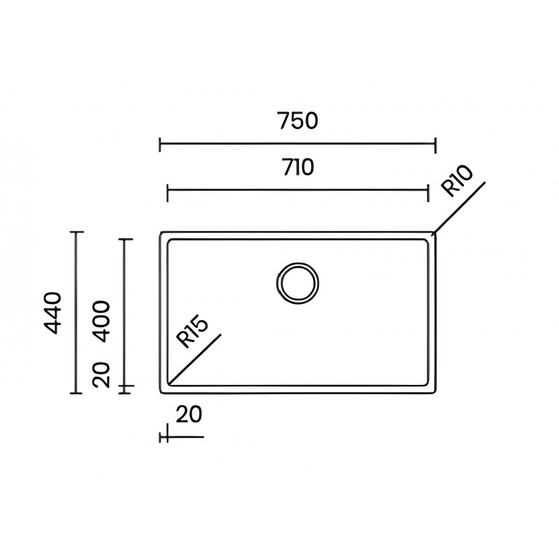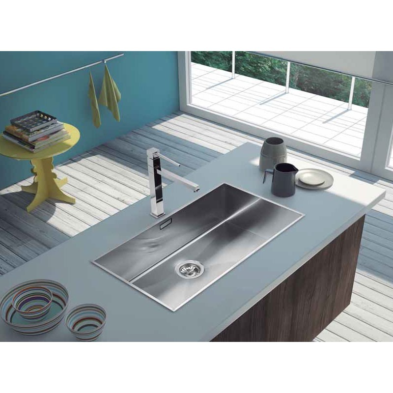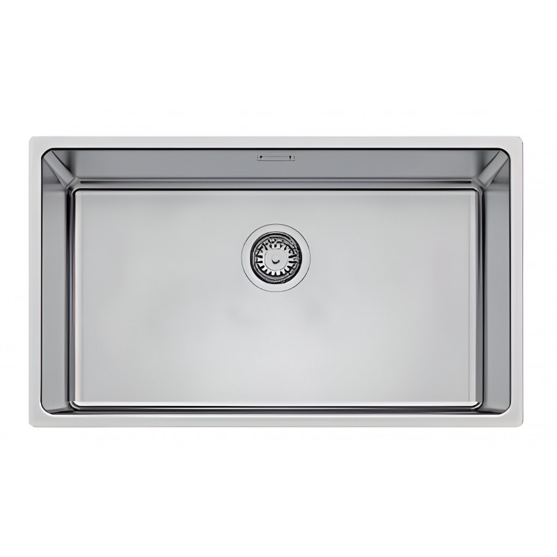Fregadero de acero cepillado modelo Ferrara Plus de 750 x 440 mm para instalación bajo encimera, óptica enrasada o filotop a elegir.