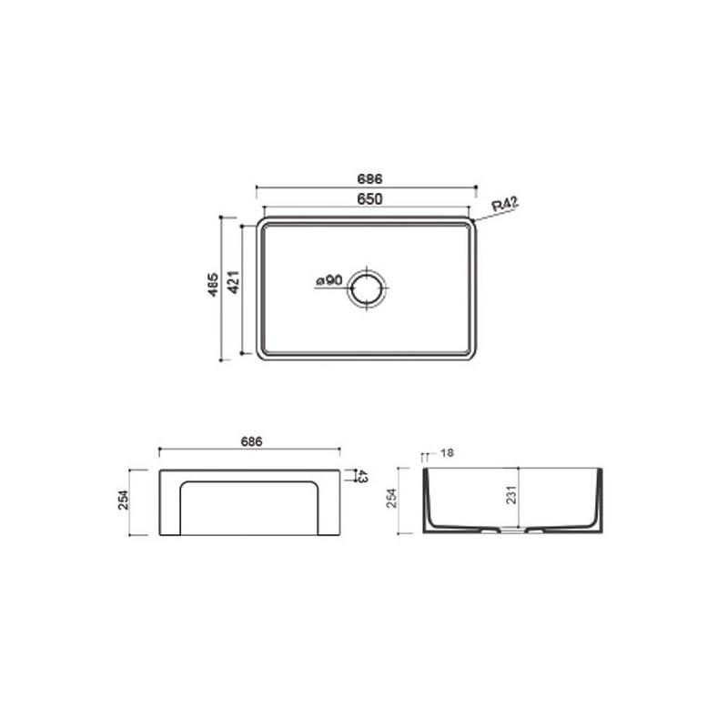 Fregadero blanco de cerámica modelo Lagoon 27 de 686 x 485 mm para instalación sobre encimera o bajo encimera.