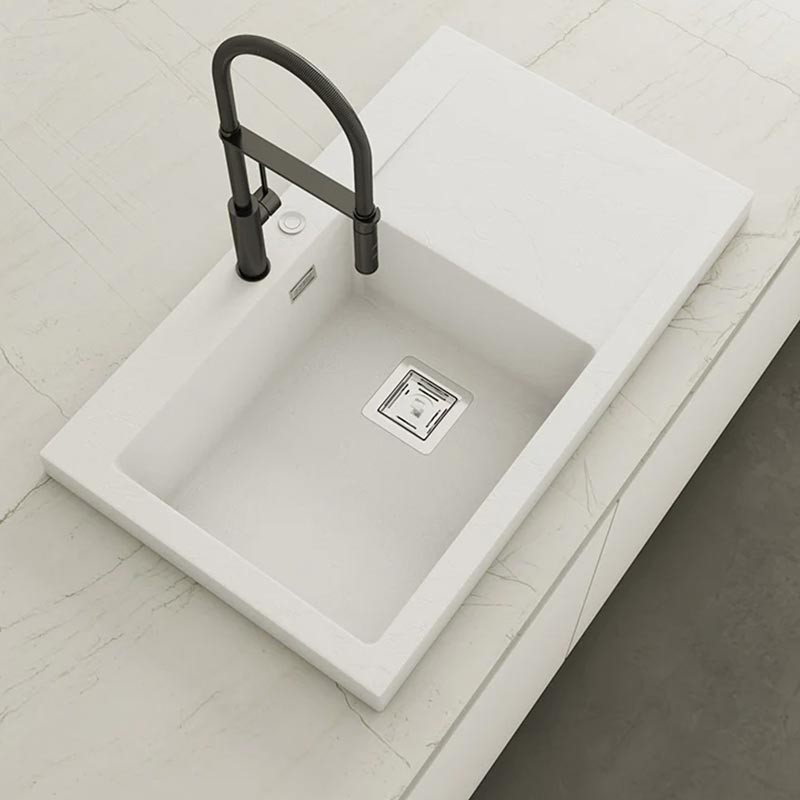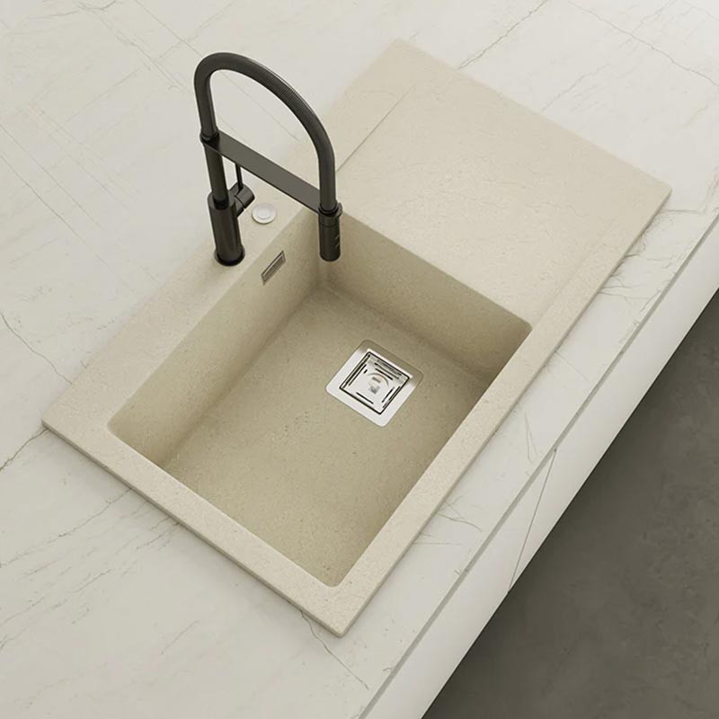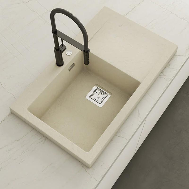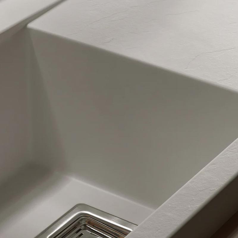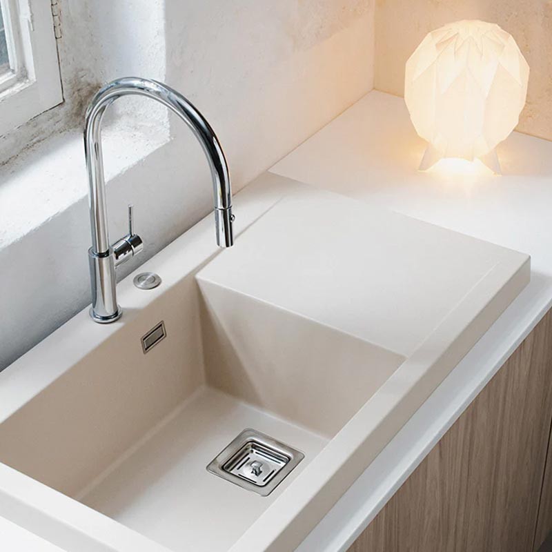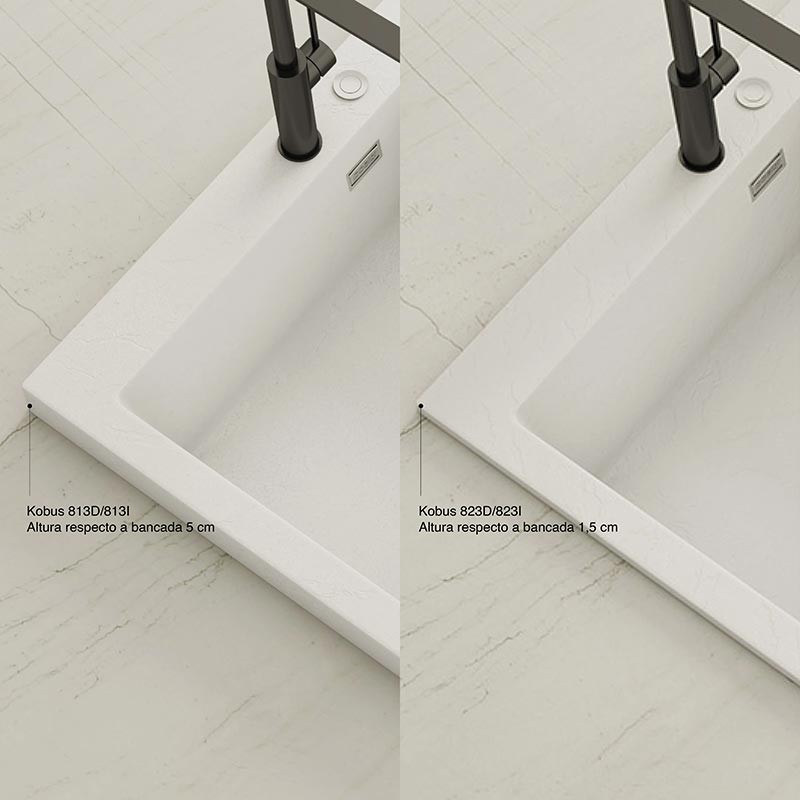 Fabricado por Poalgi en su material en masa Hekla®, este fregadero de granito otorga una amplia y confortable zona de trabajo resistente a factores externos. Además, su colocación sobre encimera ofrece dos alturas diferentes para adaptarse al estilo de tu cocina.