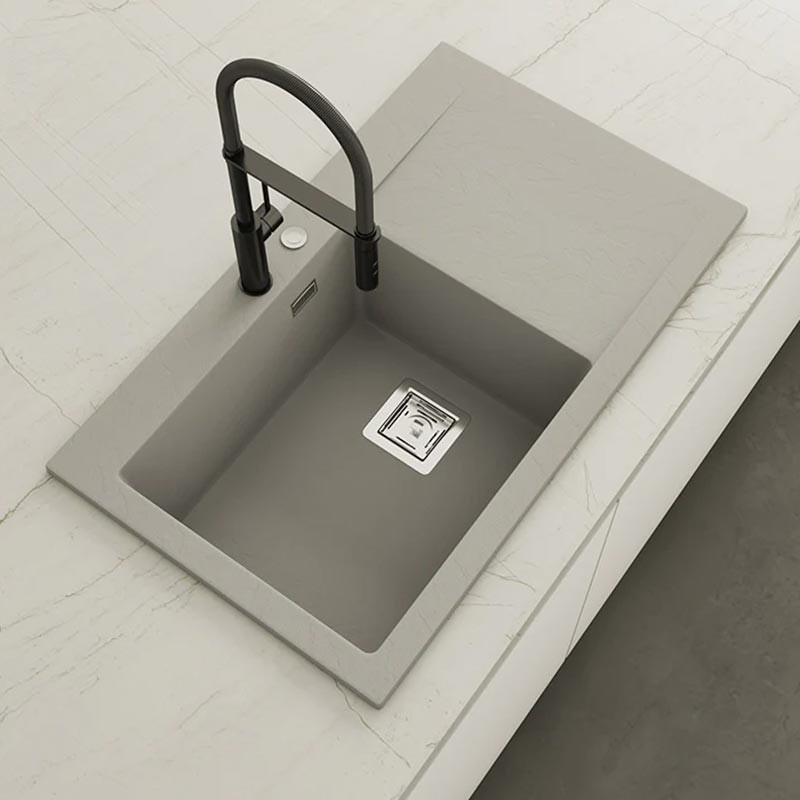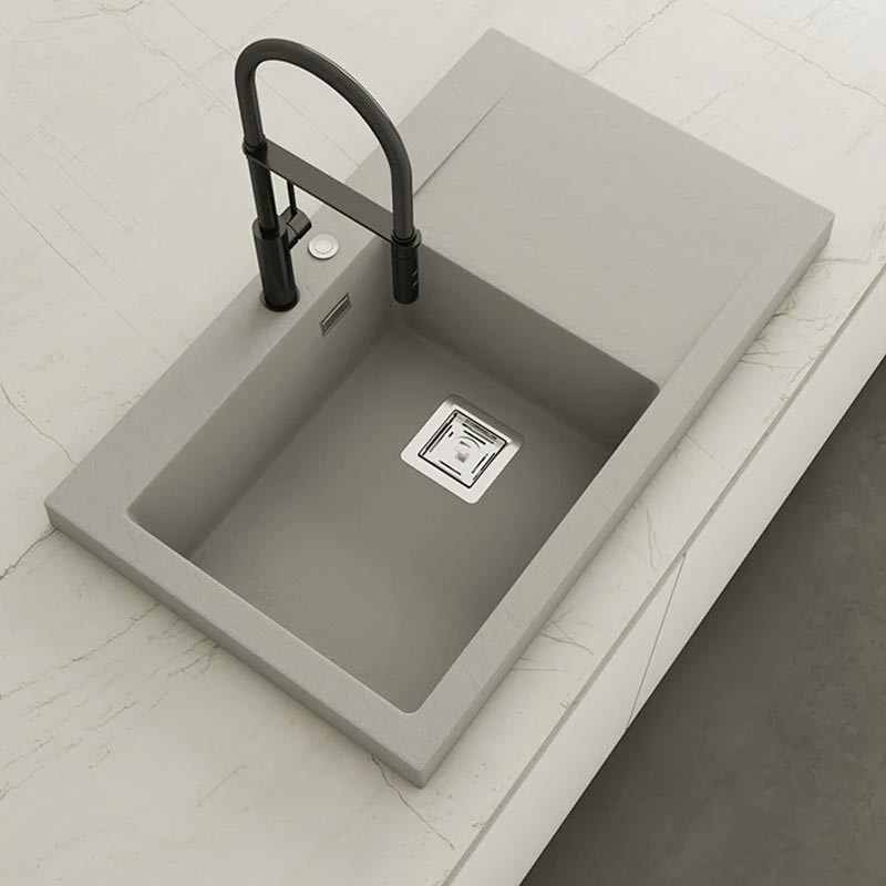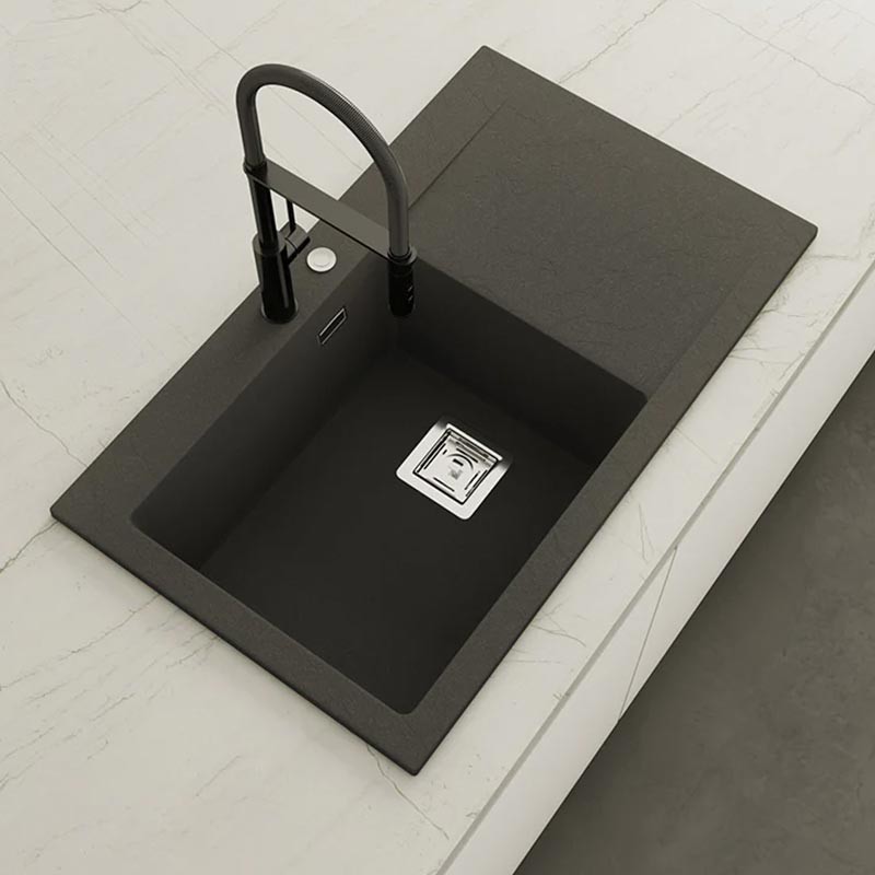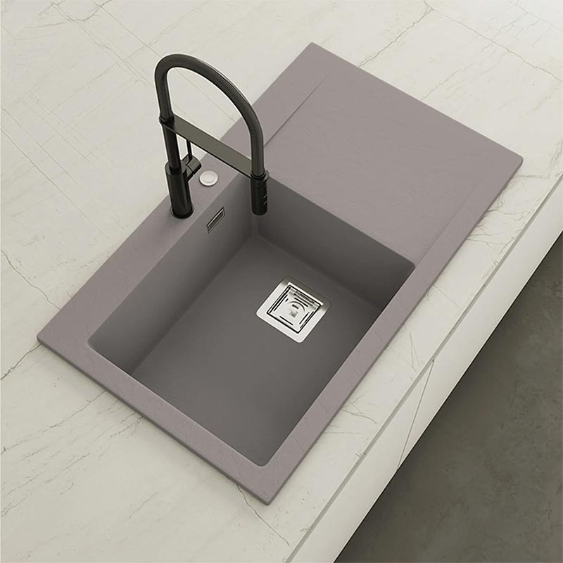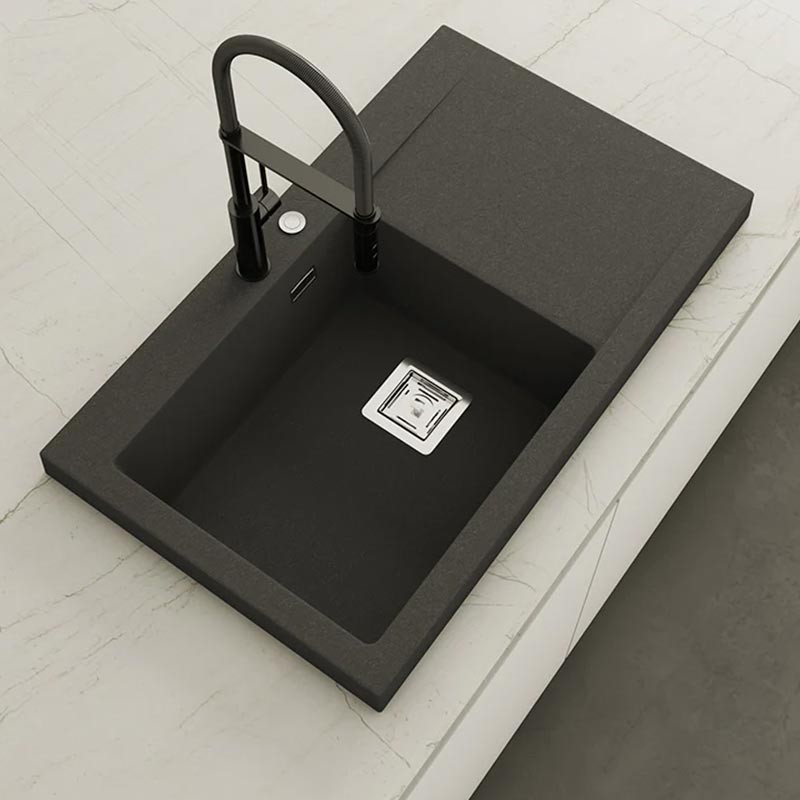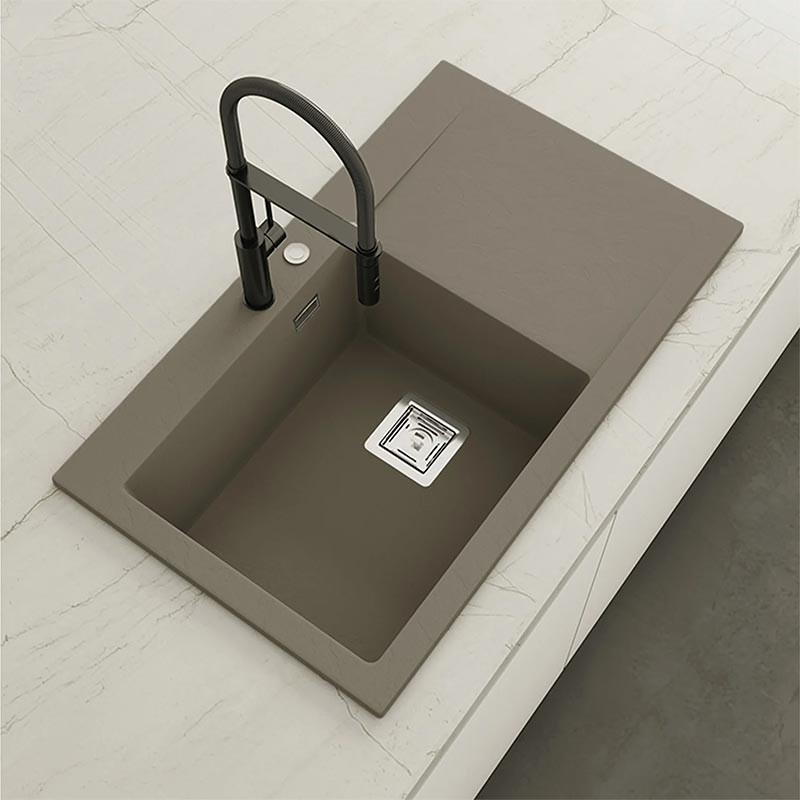 Fregadero de granito Hekla® modelo Kobus con textura pizarra mate. Diseñado para instalación sobre encimera en muebles a partir de 60 cm.