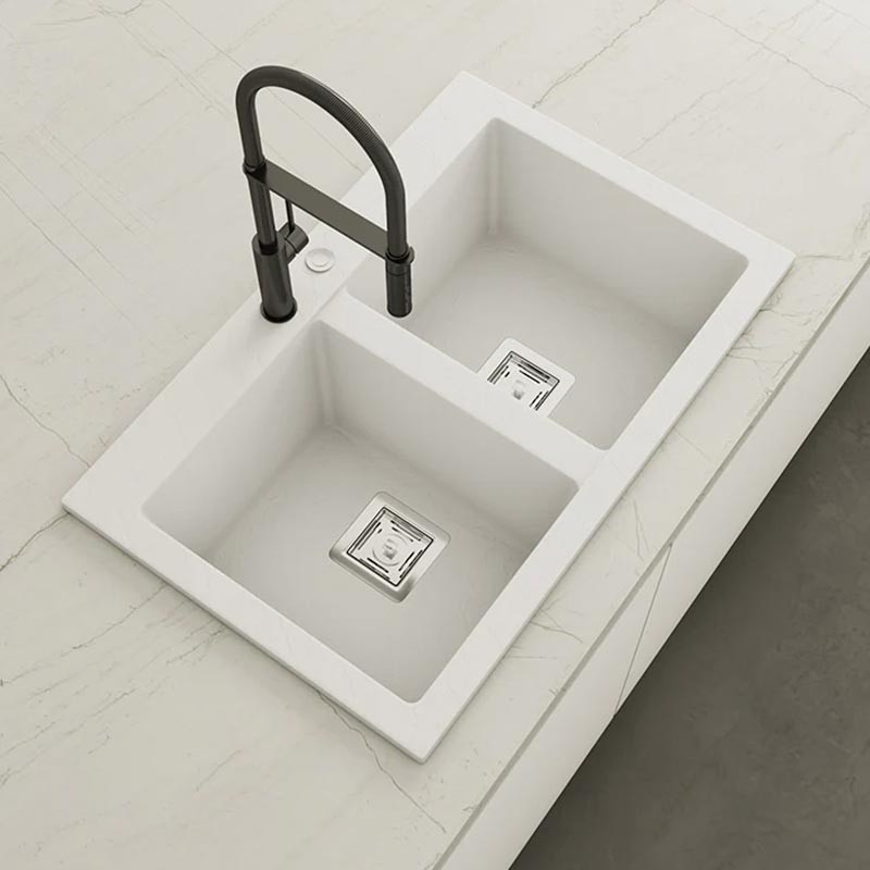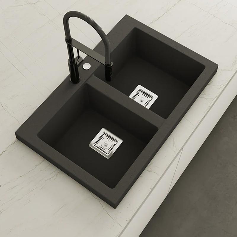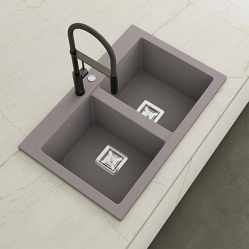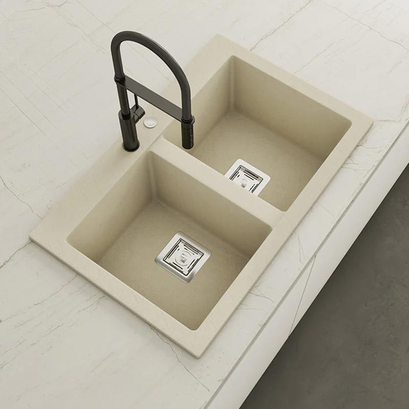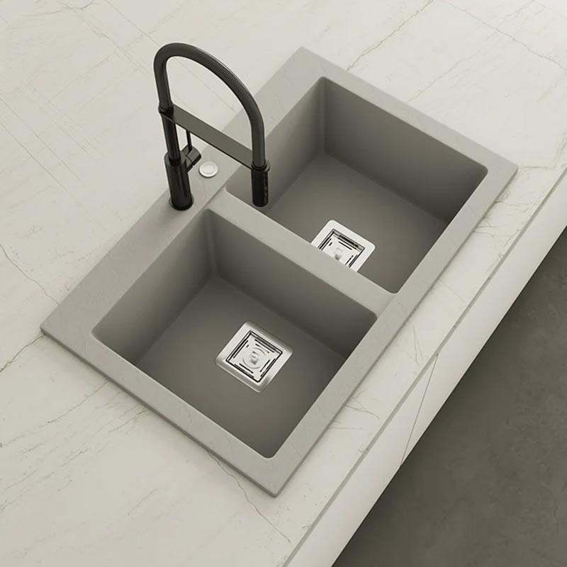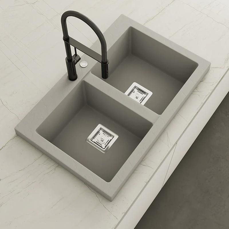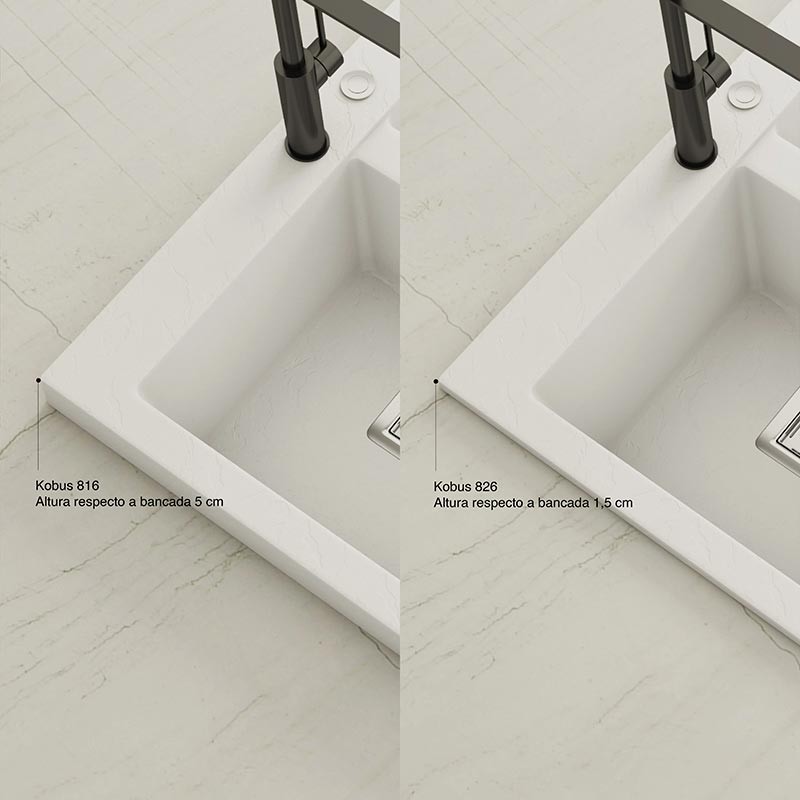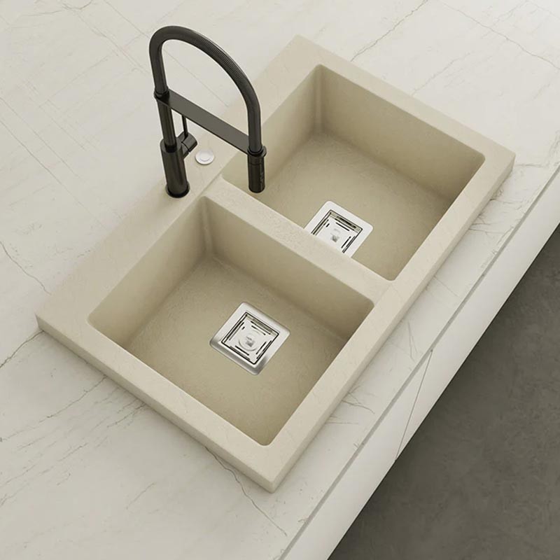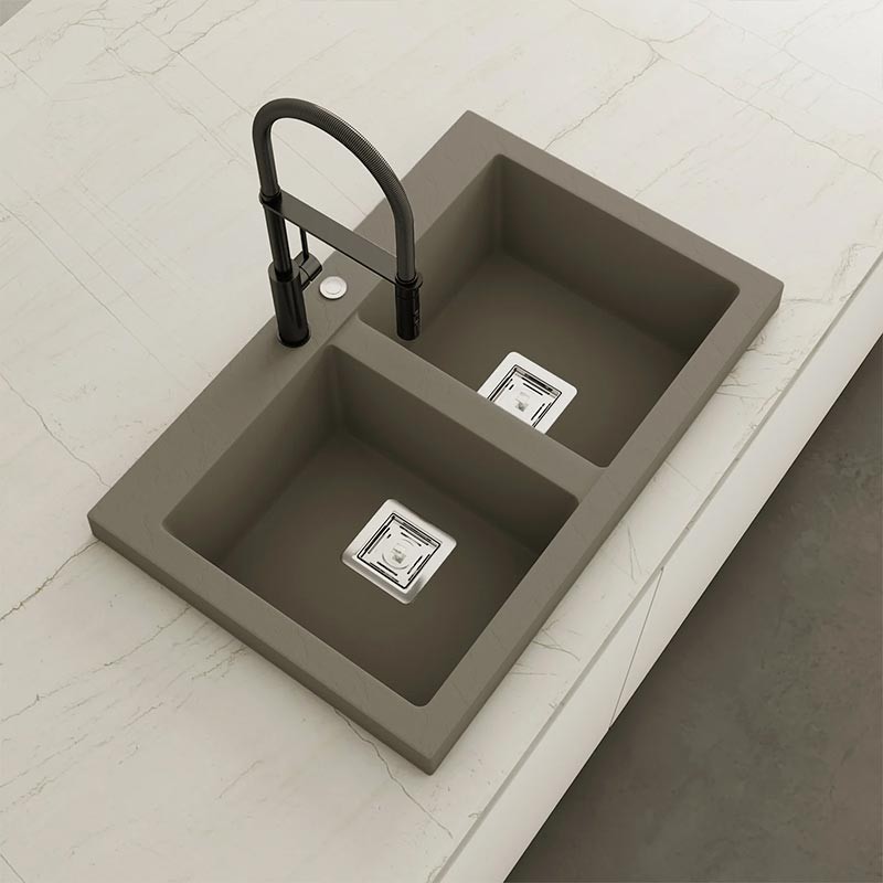 Fabricado por Poalgi en su material en masa Hekla®, este fregadero de granito otorga una amplia y confortable zona de trabajo resistente a factores externos. Además, su colocación sobre encimera ofrece dos alturas diferentes para adaptarse al estilo de tu cocina.