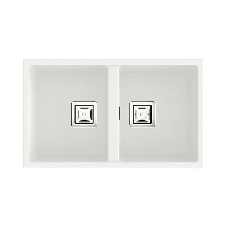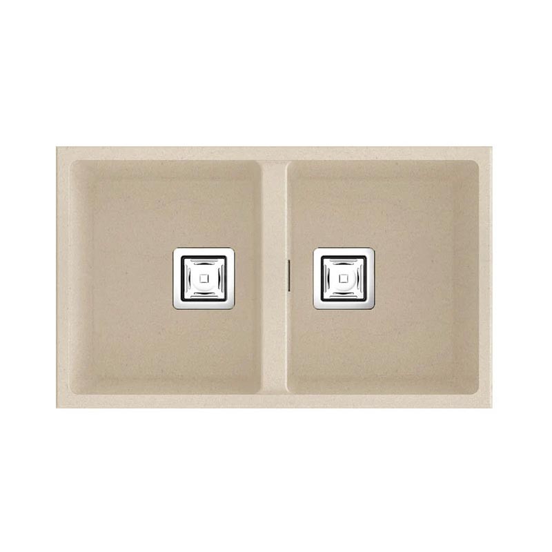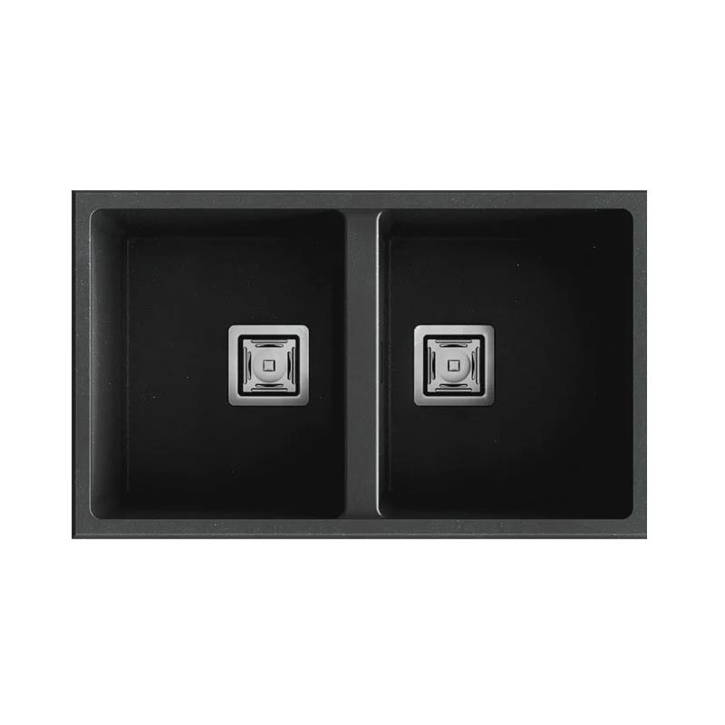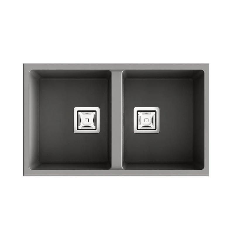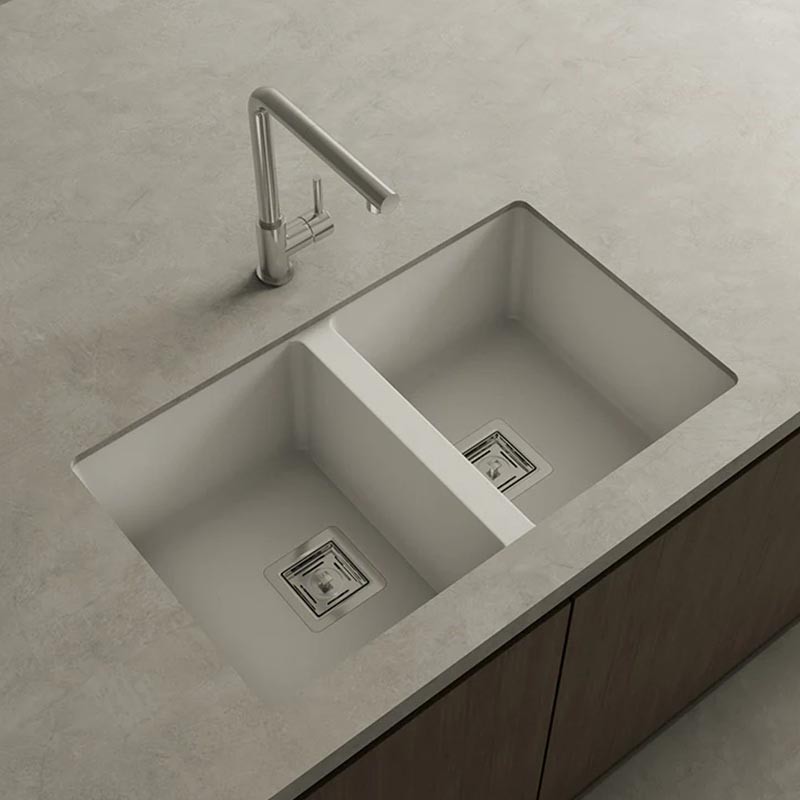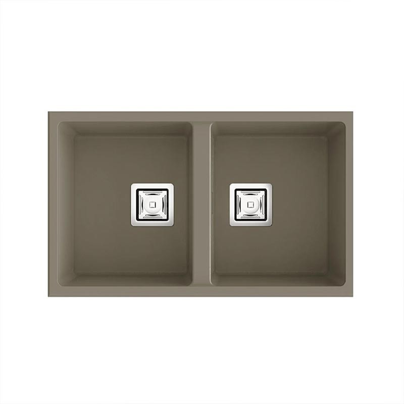Fregadero de granito Hekla® modelo Zie 70 de dos cubetas acabado mate diseñado para instalación bajo encimera o sobre encimera en muebles de 80 cm mínimo.