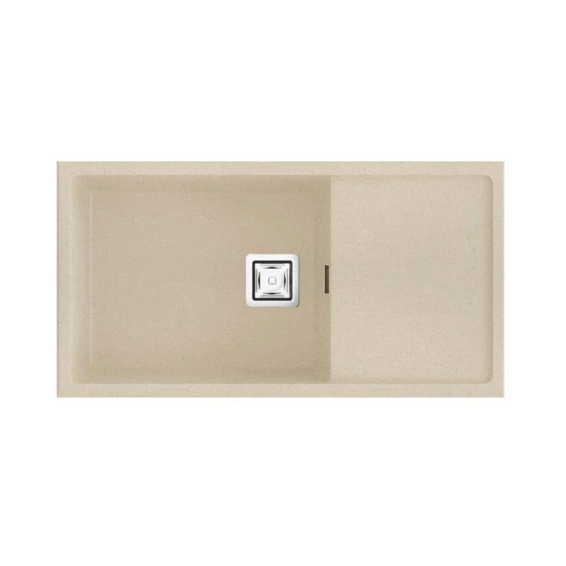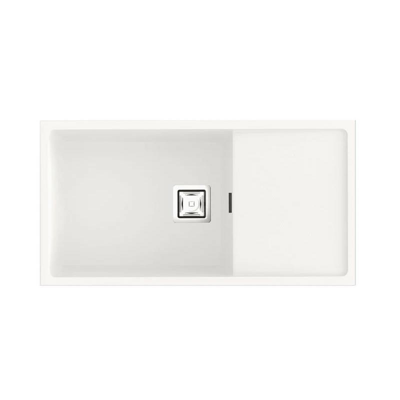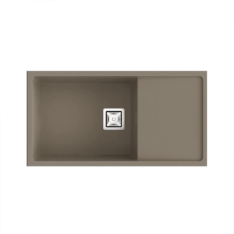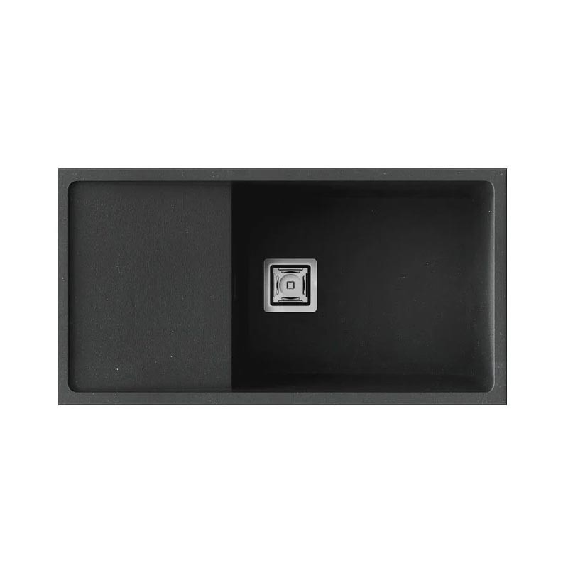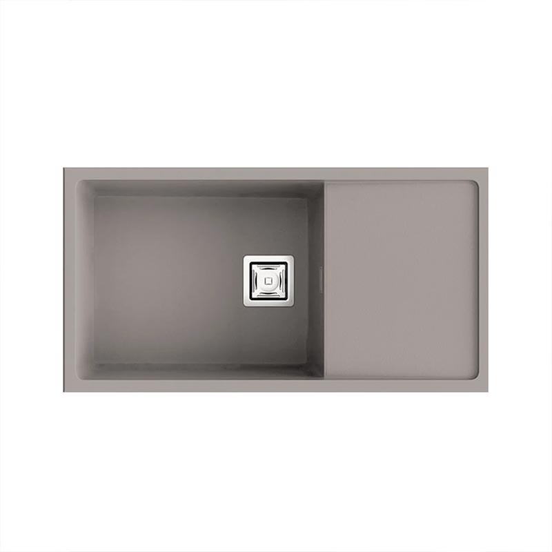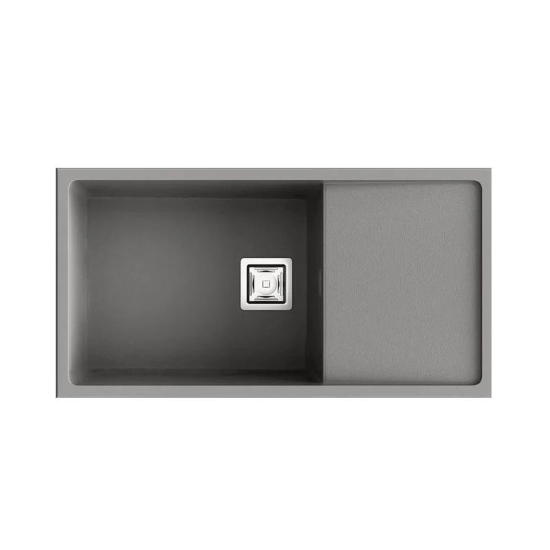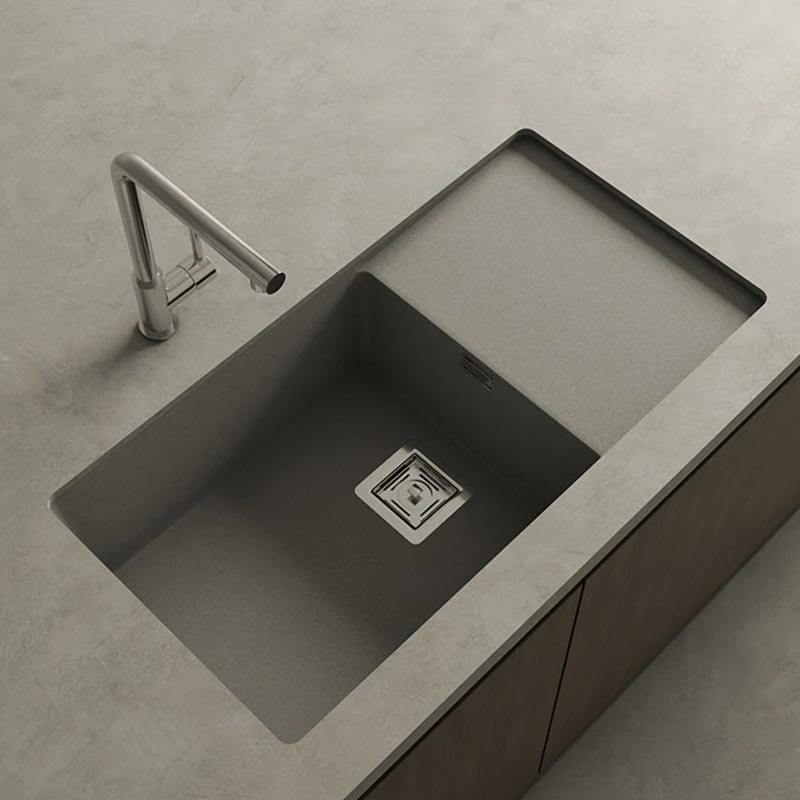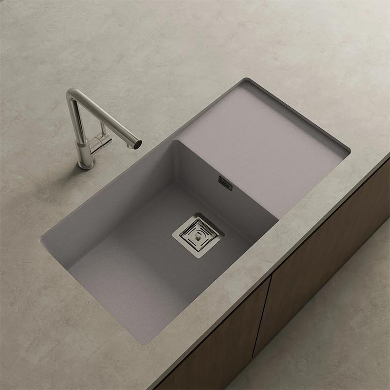 Fregadero de granito Hekla® modelo Zie 81 de una cubeta mas escurridor acabado mate diseñado para instalación bajo encimera o sobre encimera en muebles de 90 cm mínimo.