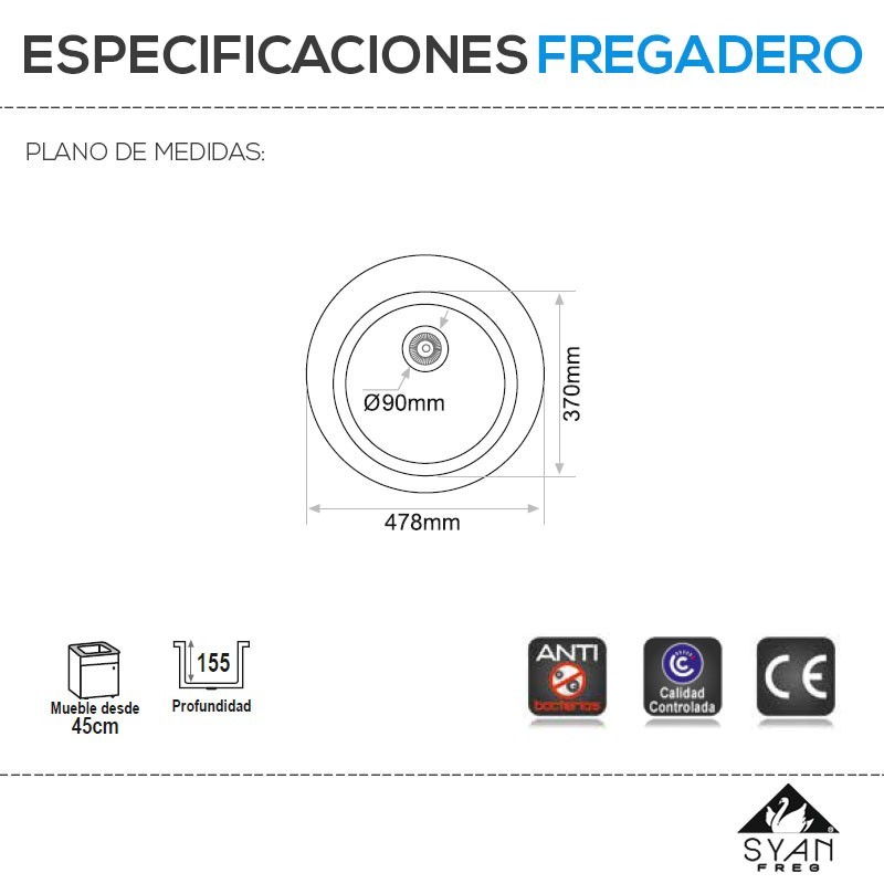 Fregaderos sobre encimera sinteticos de resina en varios colores MODELO MINOS. Medidas: Diametro interior 37 cms y exterior 47,8 cms