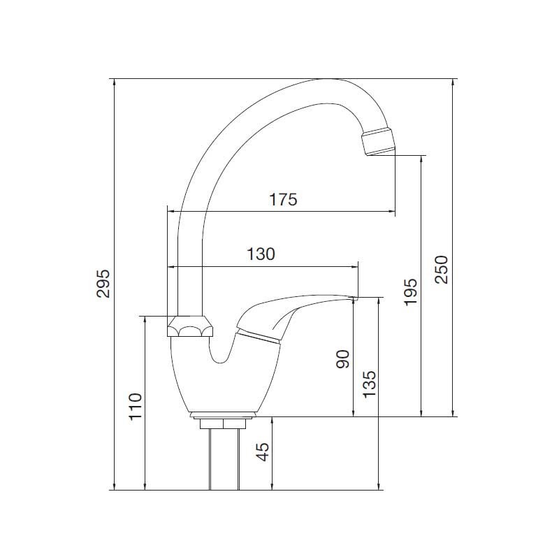 Grifo de 1 salida para agua fría y caño alto de 25 cm de altura y acabado cromado para fregadero o pila lavadero. Cartucho convencional de 25 mm. Instalación vertical sobre repisa.