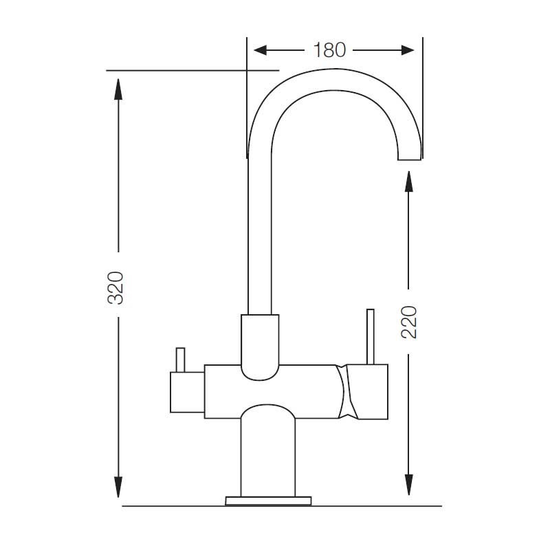 Grifo de doble función con 3 vías (2 para agua de red y 1 para agua de osmosis) modelo Circular de 32 cm de altura y acabado cromado para fregadero de cocina. Cartucho cerámico de 35 mm de salida fija para el agua convencional y montura cerámica para el agua osmotizada.
