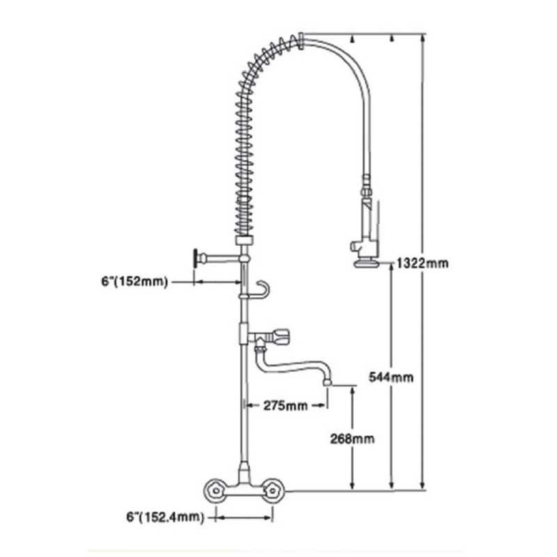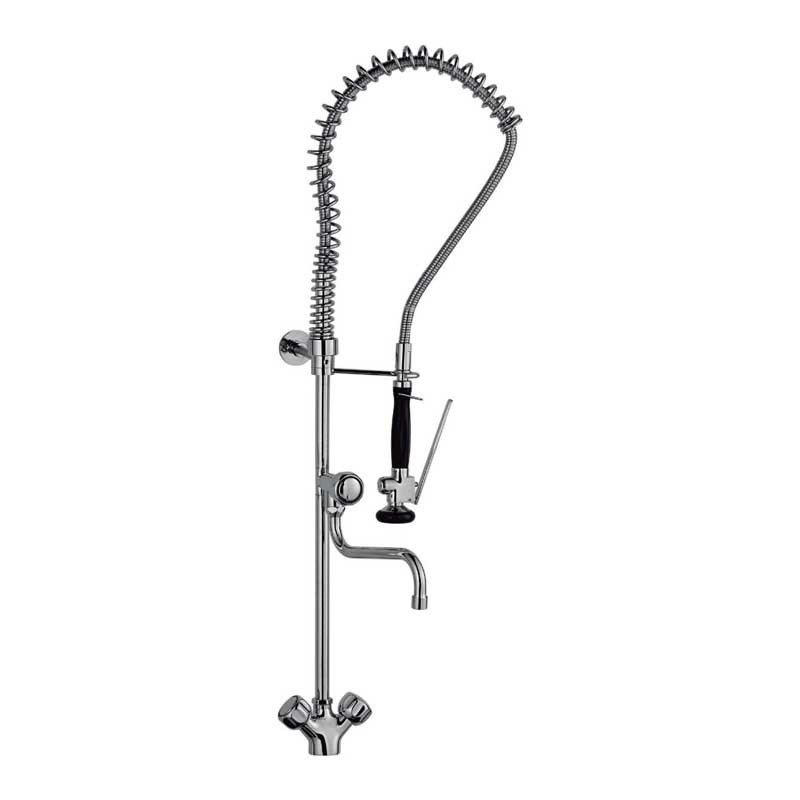 Grifo bimando con ducha, caño con muelle y grifo supletorio modelo Industrial de 132,2 cm de altura y acabado cromado para fregaderos de cocinas industriales. Cartucho cerámico de 35 mm. Instalación vertical sobre repisa.