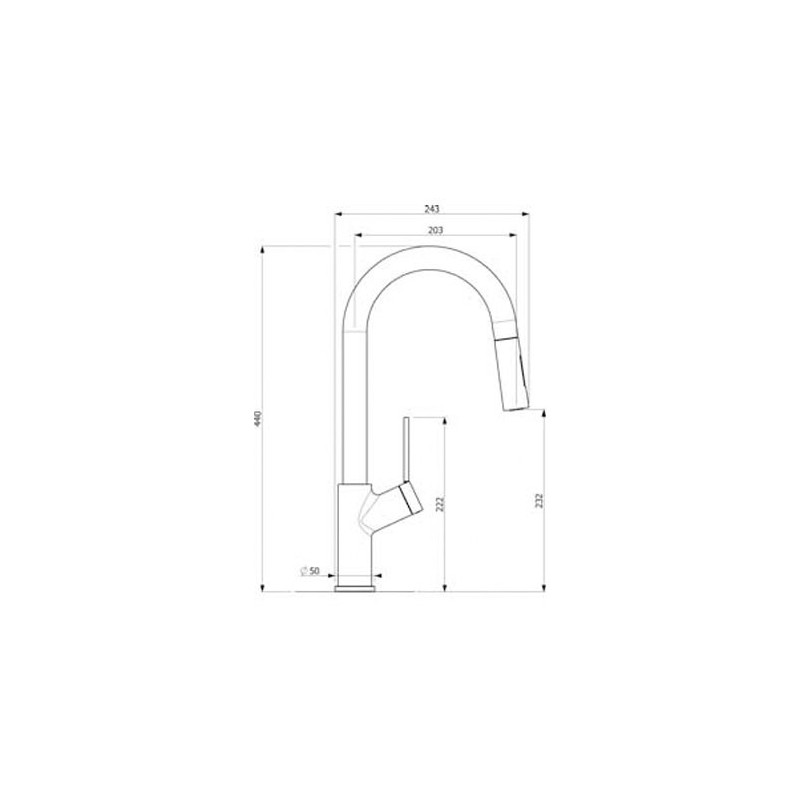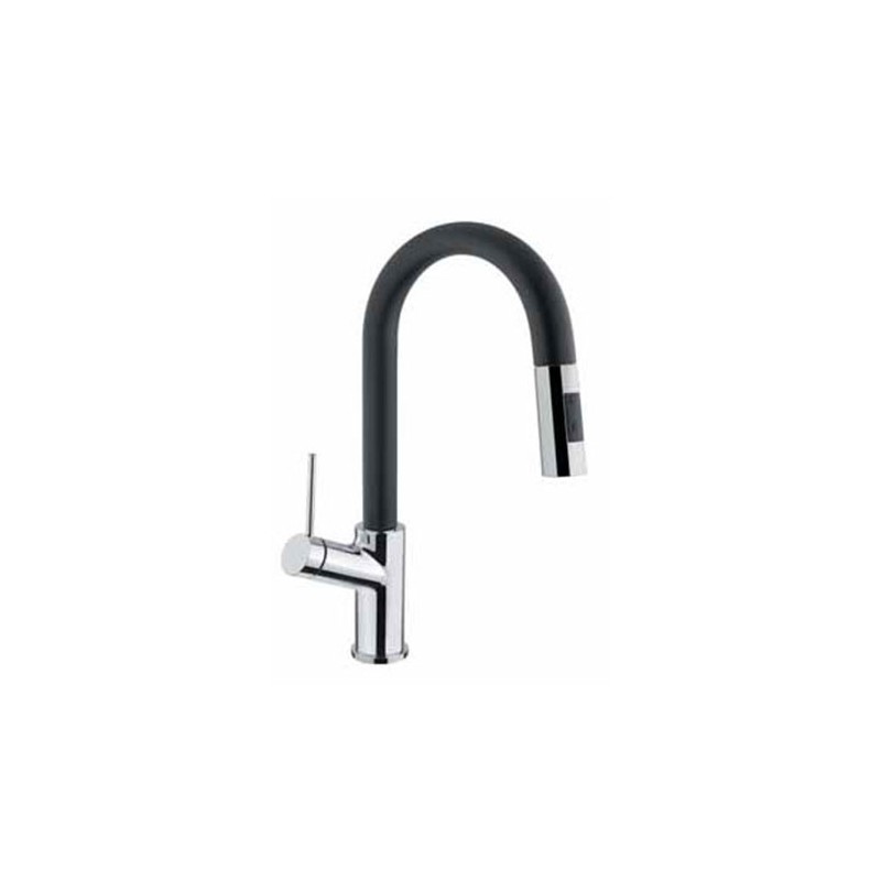 Grifo de cocina modelo Viva D30 de tipo monomando, ducha extraible y diseño italiano en acero inoxidable acabado cromo brillo y negro.