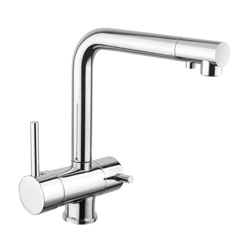 Grifo de cocina modelo Pure Water de tipo monomando, ósmosis y diseño italiano en acero inoxidable acabado cromo o inox a elegir.