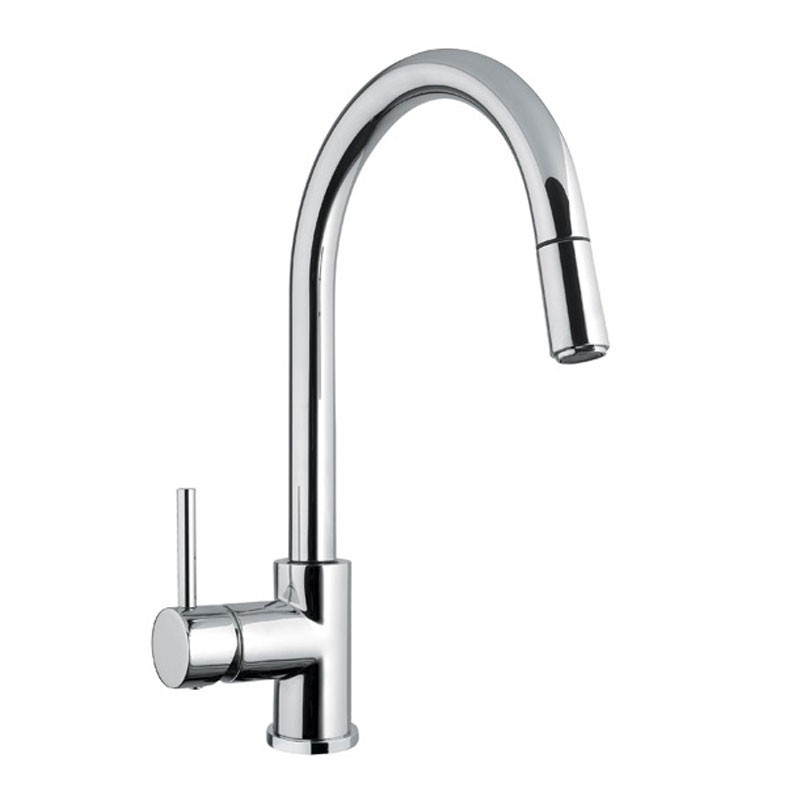 Grifo de cocina modelo Bari de tipo monomando, caño extraible y diseño italiano en acero inoxidable acabado cromo brillo.