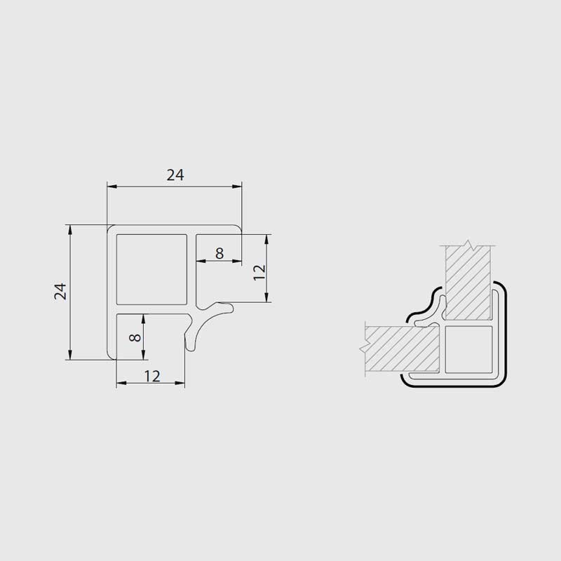 Accesorio de PVC con capa de aluminio blanco para unión de zócalos de PVC en ángulo de 90 grados exterior o interior.