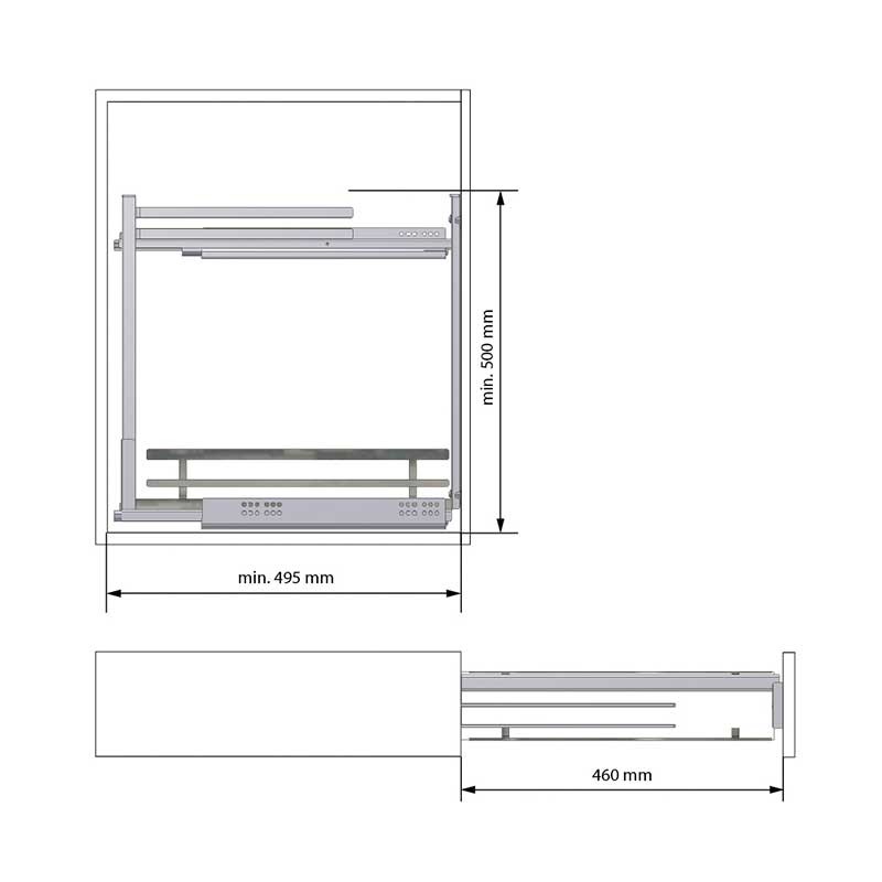 Extraíble para cocina Línea Flat fabricado en acero antracita con guías Hettich, soporte para paños y botellero con base de melamina antracita.