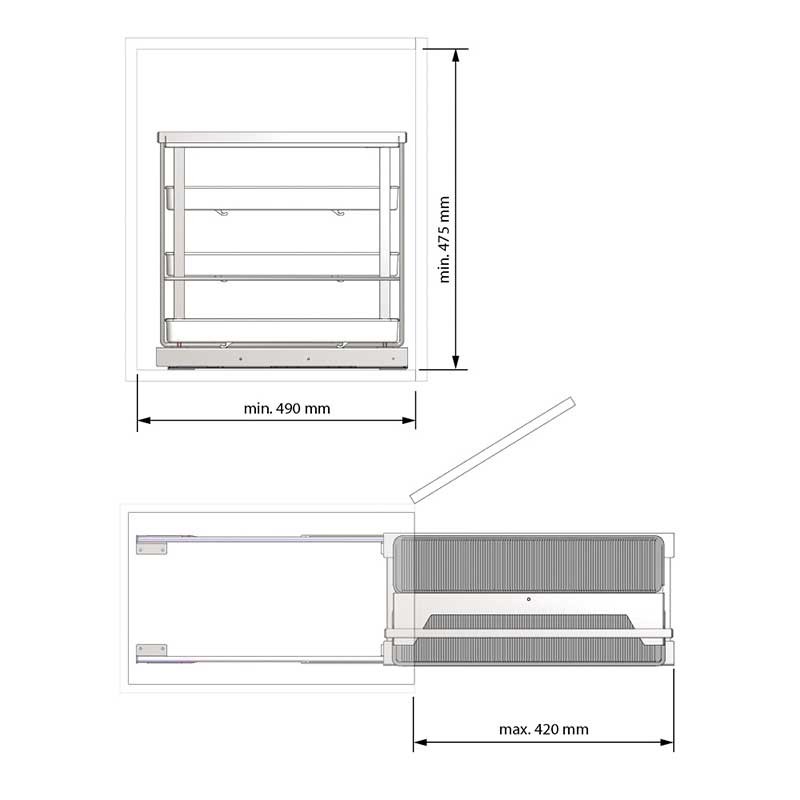 Extraíble para productos de limpieza Línea Flat fabricado en acero antracita con 4 bandejas porta-objetos y guías con cierre amortiguado para muebles de cocina.