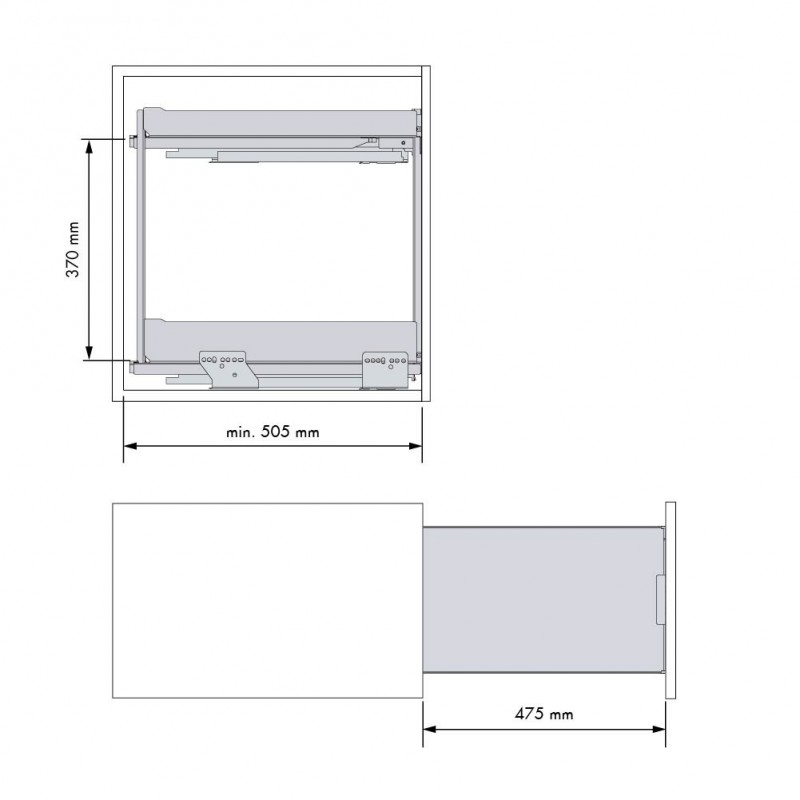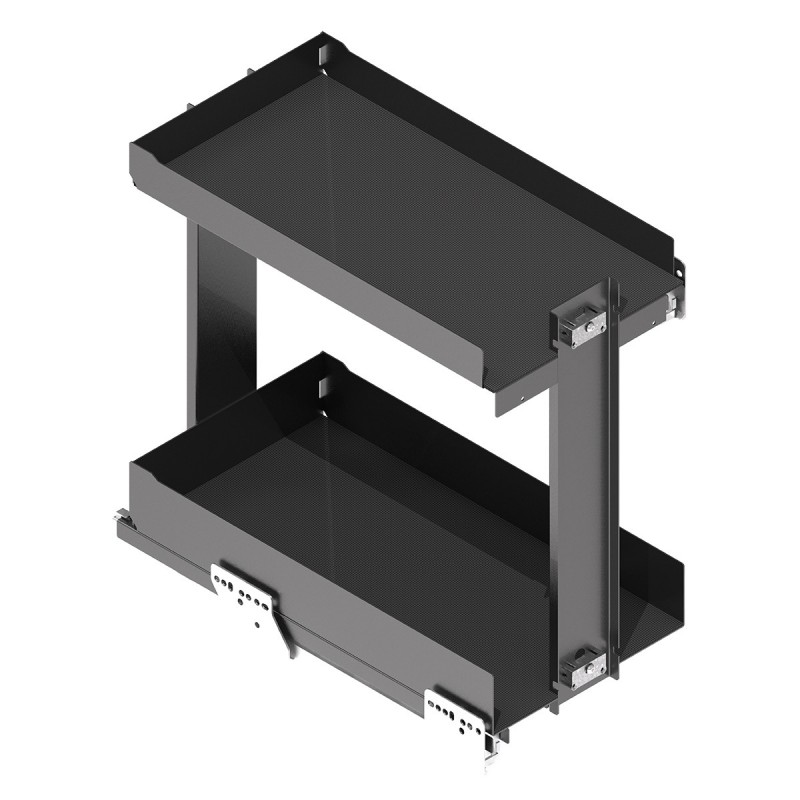 Botellero extraible Nova Flat de acero acabado antracita con bases de antideslizantes, guías basales ocultas, extracción total y cierre amortiguado.