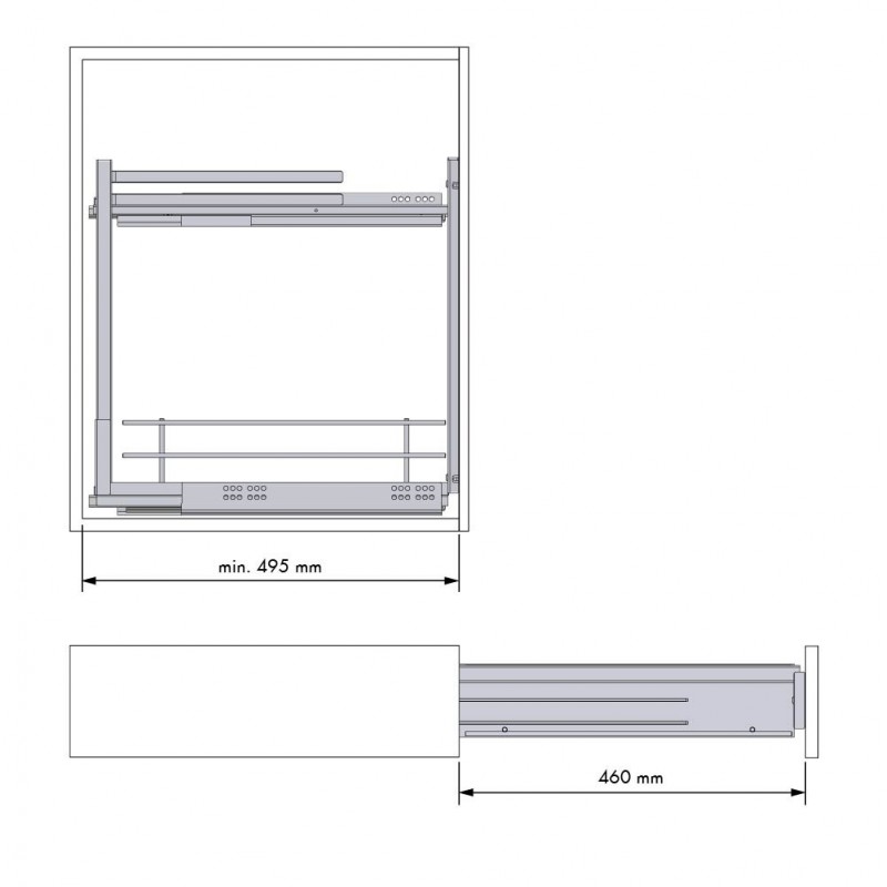 Soporte extraible para paños acabado antracita con base de melamina, guías correderas ocultas Quadro Hettich, extracción total y cierre amortiguado para una carga de hasta 30 kg.