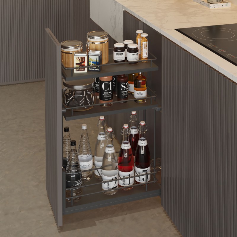 Módulo extraíble botellero gama Compact antracita para mueble de cocina para almacenaje de botellas, botes, espécias y pequeños recipientes.