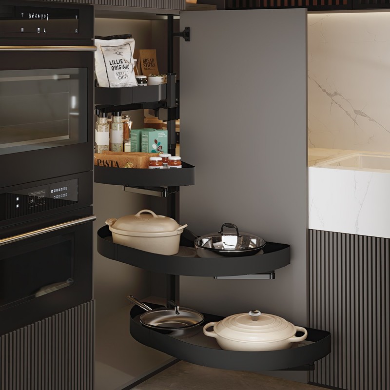 Extraible deslizante columna rincón despensero DOLPHIN II NOVA FLAT con una alta capacidad de almacenaje para mueble de cocina.
