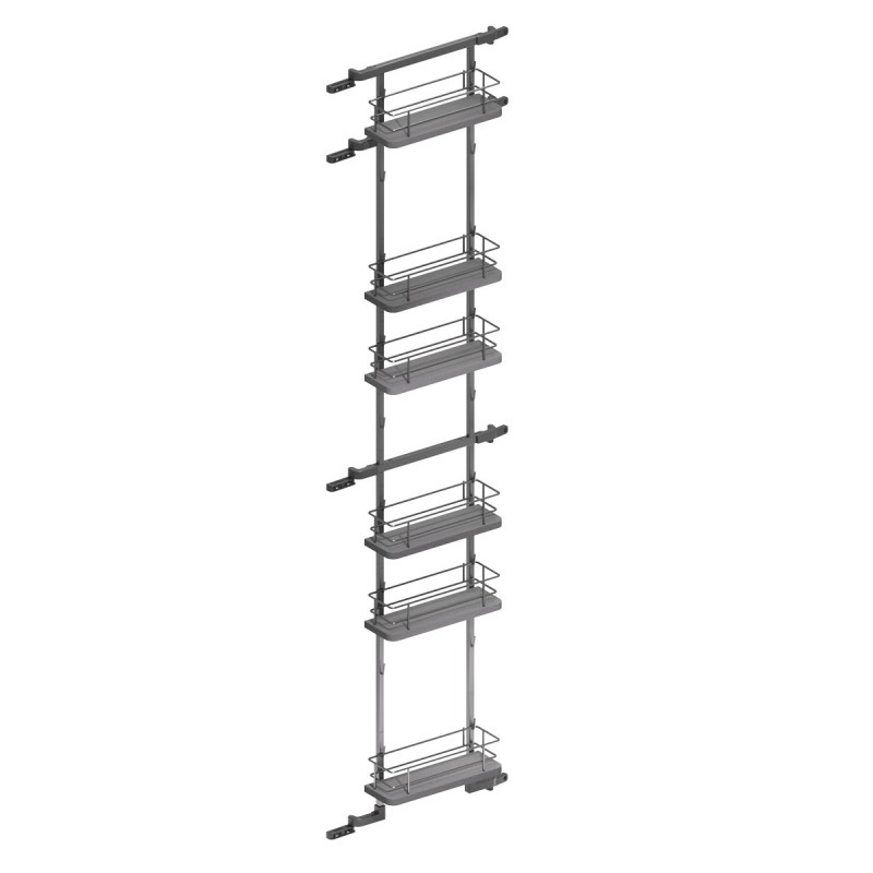 Estante despensero Compact para mueble de cocina tipo columna, fabricado en acero acabado antracita y cestos con bases de melamina.