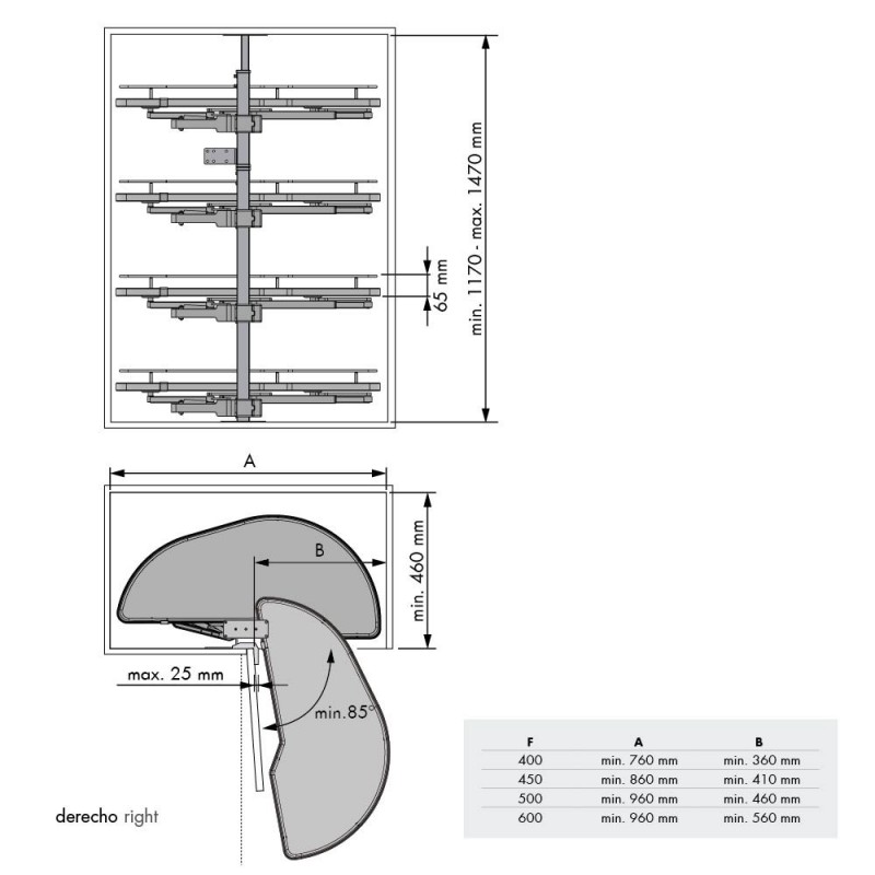 A continuación se detallan las dimensiones de los modelos disponibles dependiendo de la anchura del mueble al que van destinados. Todas las medidas están expresadas en milímetros.