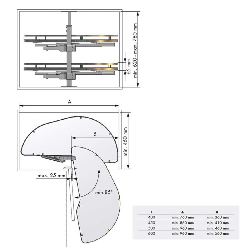 Módulo extraíble para mueble rinconera de cocina. Doble altura de bandejas para un mejor aprovechamiento del espacio. Cada bandeja sale independientemente.