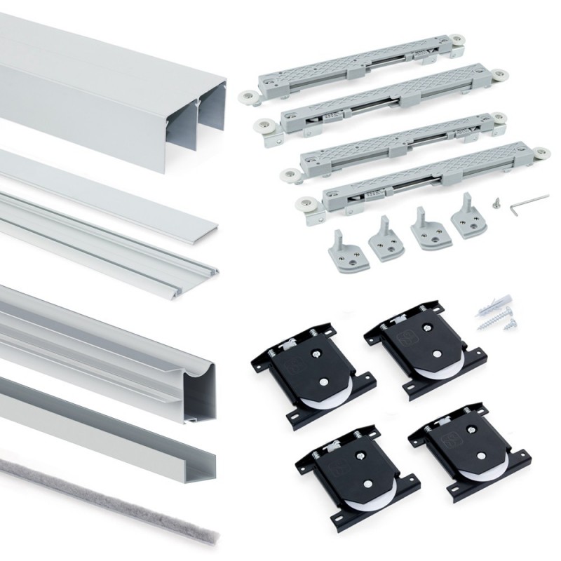 Kit para armario Placard con dos puertas correderas que incluye todos los herrajes y perfiles necesarios para su montaje e instalación.
