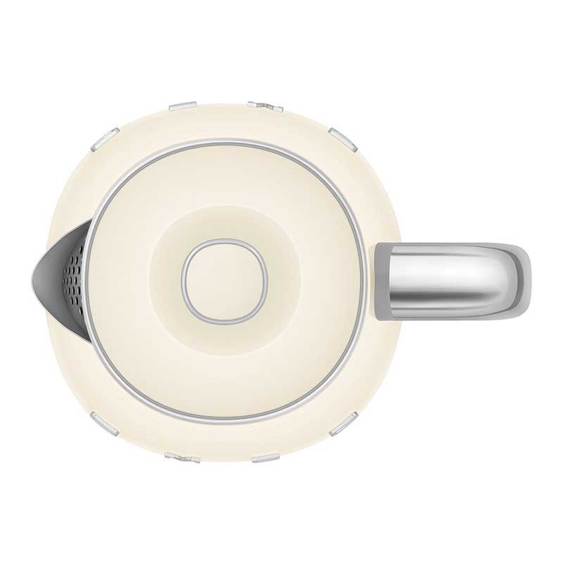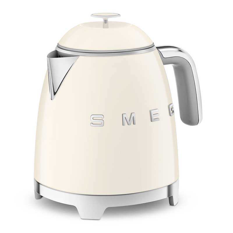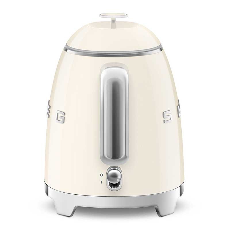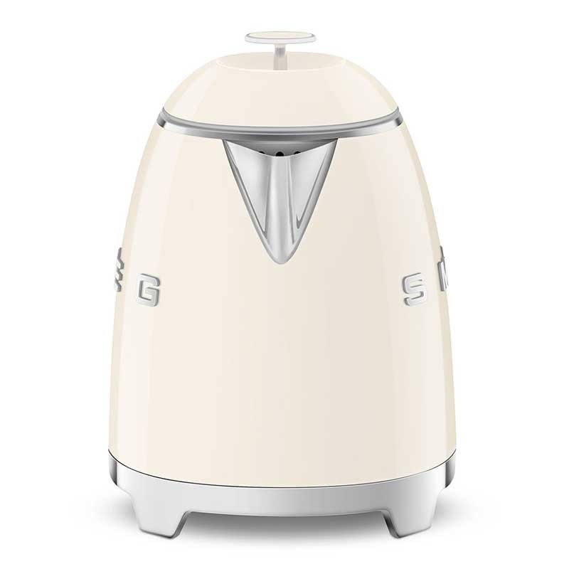 Hervidor mini Smeg 50's Style de 0,8 litros de capacidad con cuerpo en plástico acabado crema brillo y base giratoria 360º.