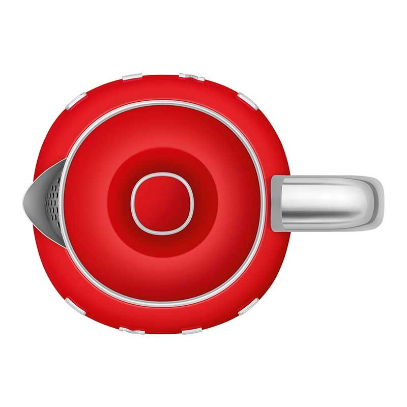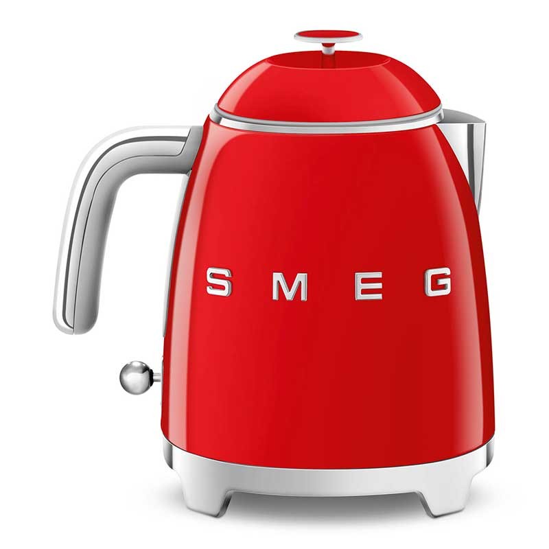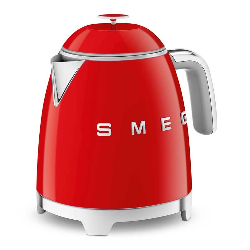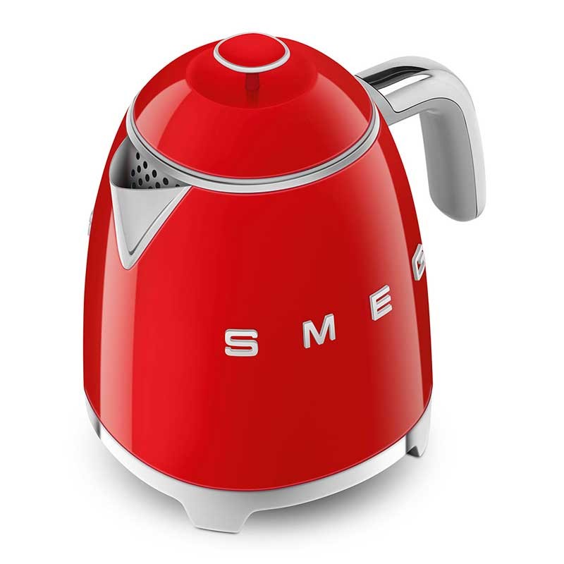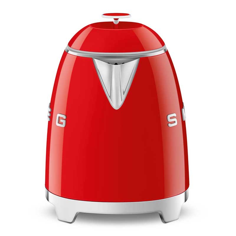 Hervidor mini Smeg 50's Style de 0,8 litros de capacidad con cuerpo en plástico acabado rojo brillo y base giratoria 360º.