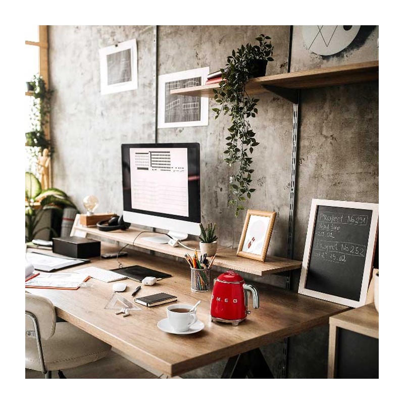 Con una potencia de 1400 W y una capacidad de 0,8 litros, el mini hervidor Smeg minimiza el desperdicio de agua. Es adecuado para diversos entornos, como oficinas en el hogar y salas de estar, pero también puede dar un aspecto atractivo y de diseño a las habitaciones de hotel. La doble pared de acero inoxidable interna mantiene la temperatura del agua por más tiempo, mientras que la pared externa de plástico se mantiene fría al tacto.