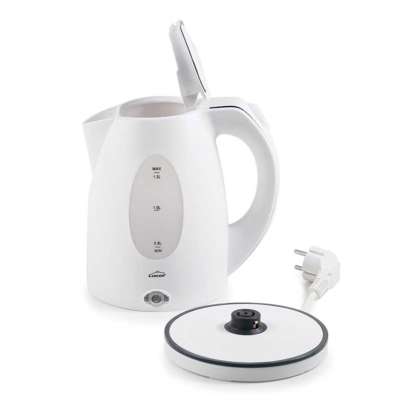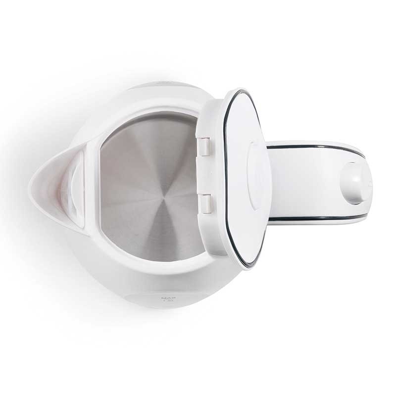 Potente hervidor eléctrico de 2000W con calefactor oculto de acero inoxidable, 1,5 L de capacidad, función de apagado automático y base rotativa.